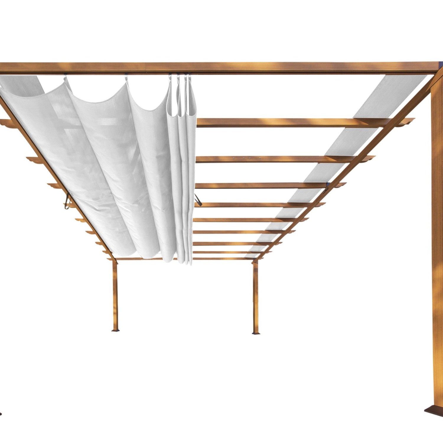 Details: The Verona Pergola from Paragon Outdoor provides over 176 square feet of outdoor living space and can be used year-round. It features a retractable canopy and finished to look like Canadian Cedar. The powder-coated aluminum frame makes this pergola rust free and maintenance free. It's a perfect alternative to wood beams that weather, crack, twist, and rot away over the years. Ground stakes are included and bolts that can be used to secure this pergola to a wooden deck or concrete slab are provided. Installation is problem free. This pergola comes with clear instructions that have step by step diagrams. Measures 11 feet by 16 feet by 7.75 feet.