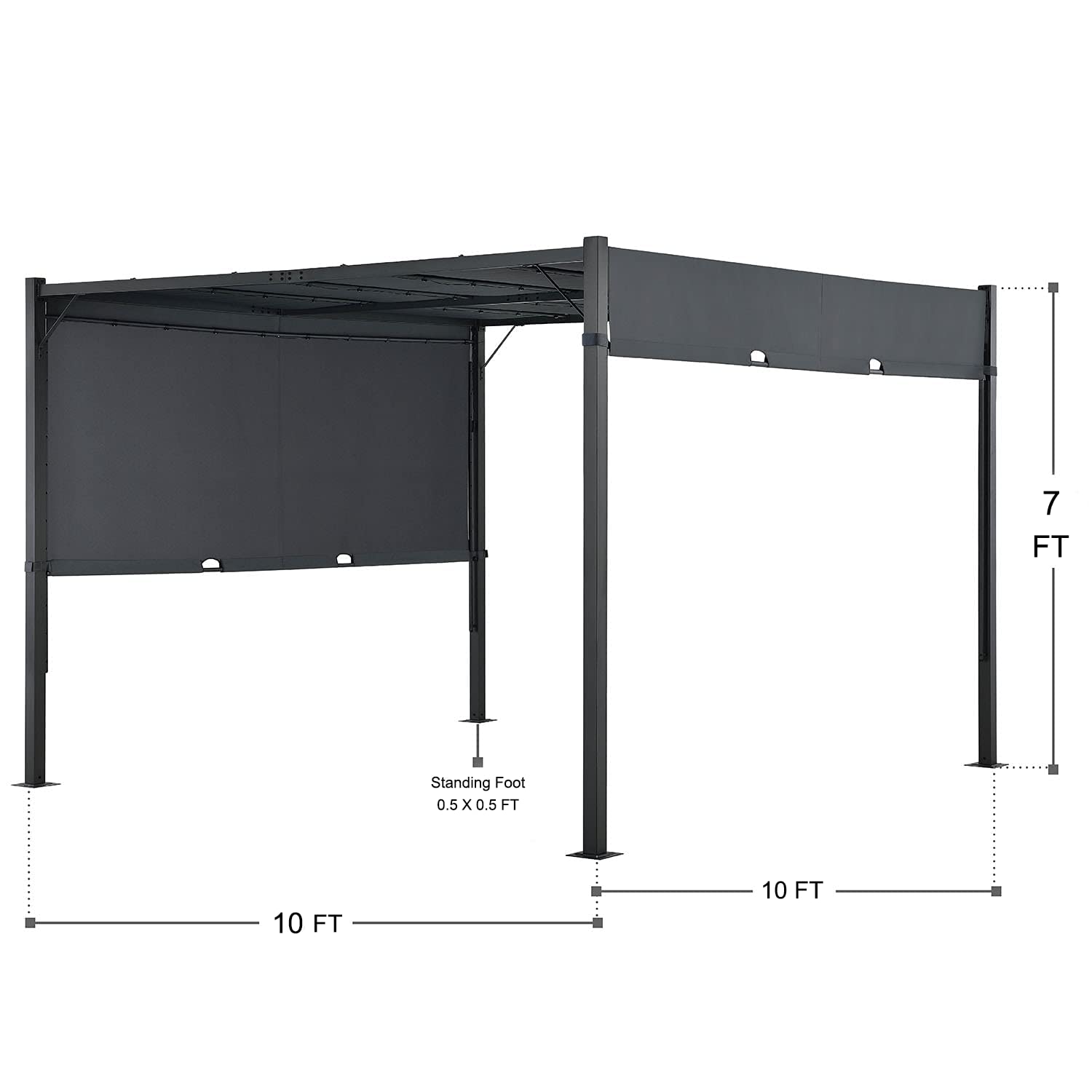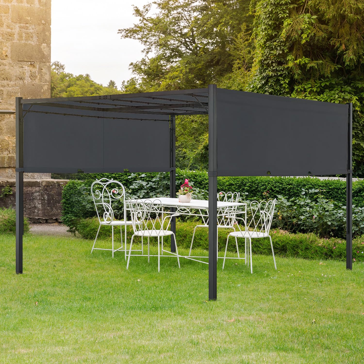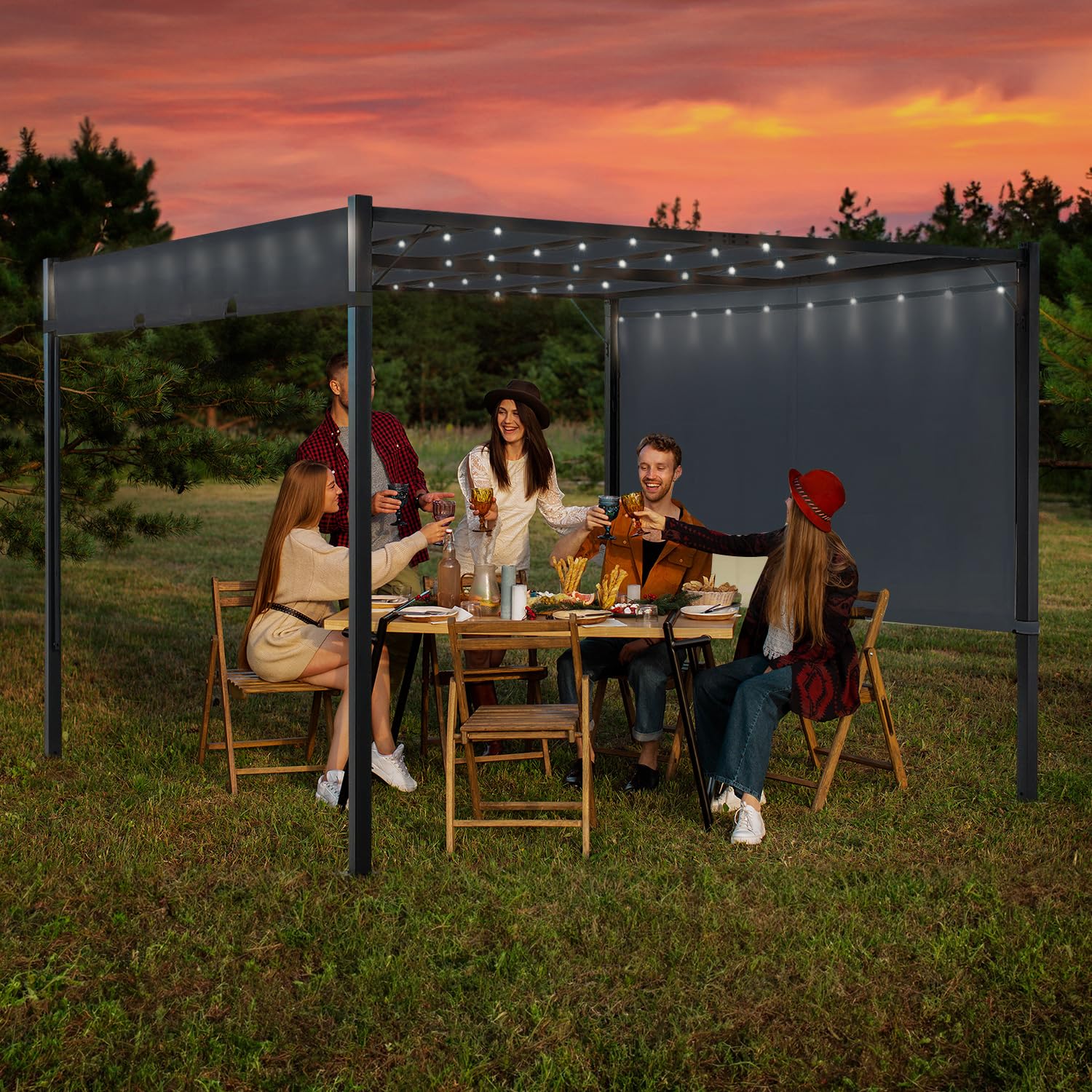 Pergola, 10×10 Outdoor Pergola w/Heavy Duty Aluminum Frame and Retractabble Sun Shade Canopy Shelter for Backyard Deck, Grey