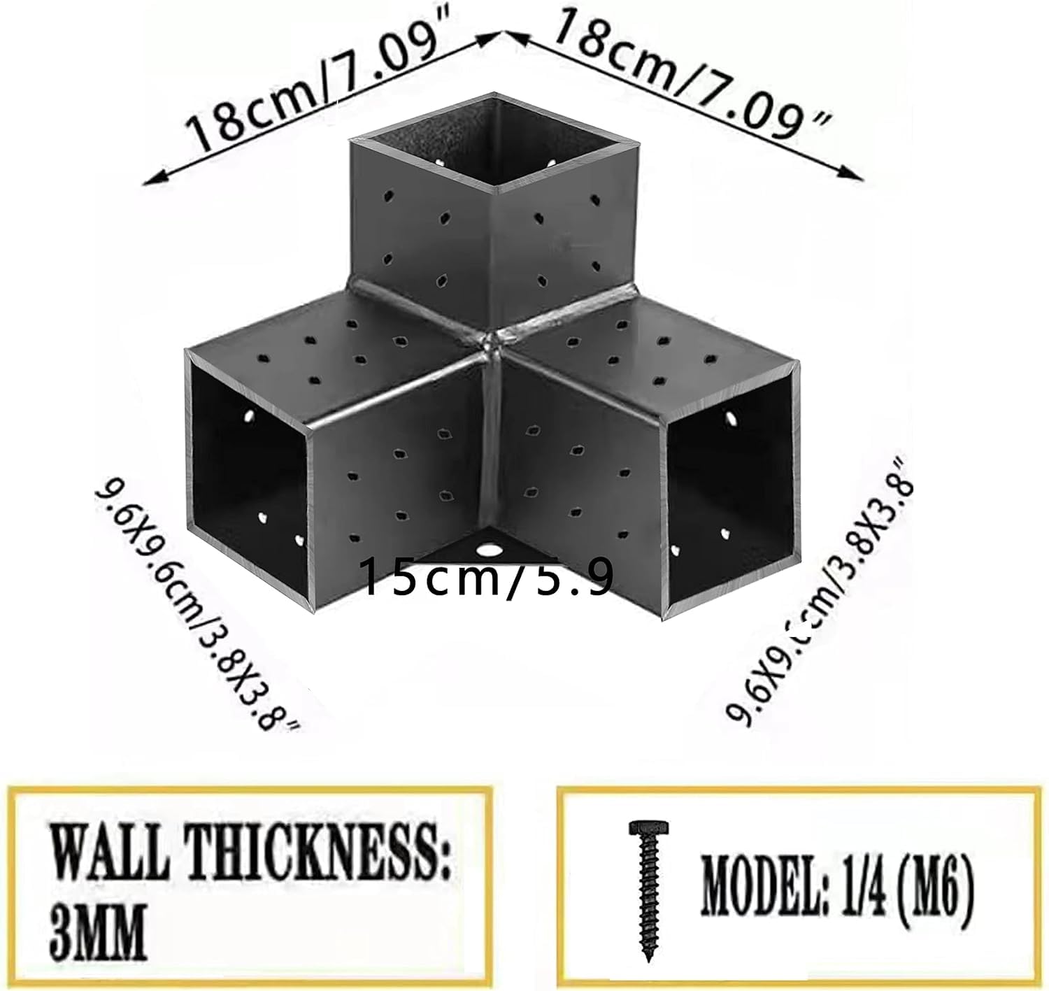Details: Actual inner size:3.6×3.6inch(91.6mm),This size applies to nominal standard 4"x 4" wooden post.never rust.