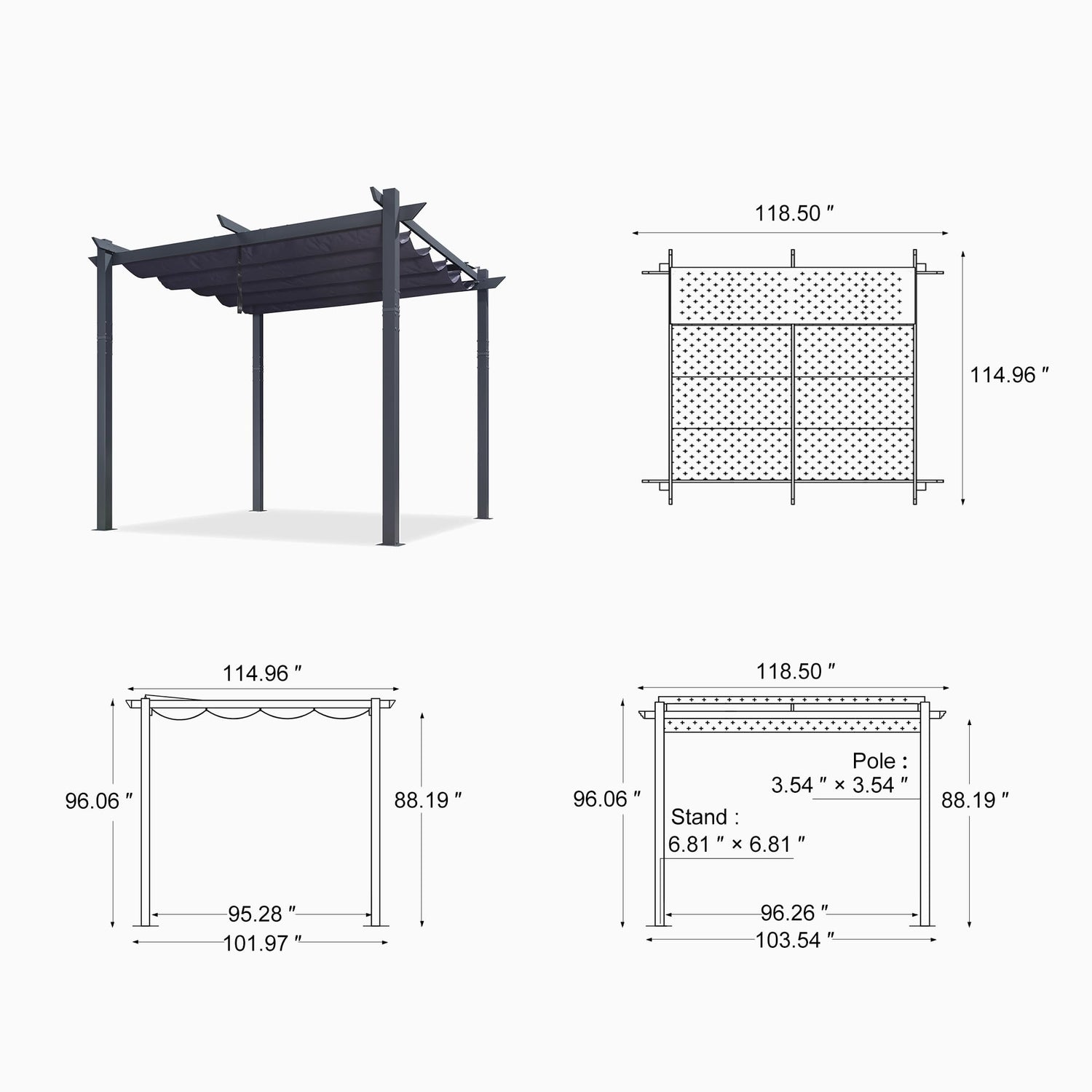 - 【Extra Protection Design】The stationary canopy on top of the pergola better protects the retracted canopy from UV-rays and rainwater accumulation.