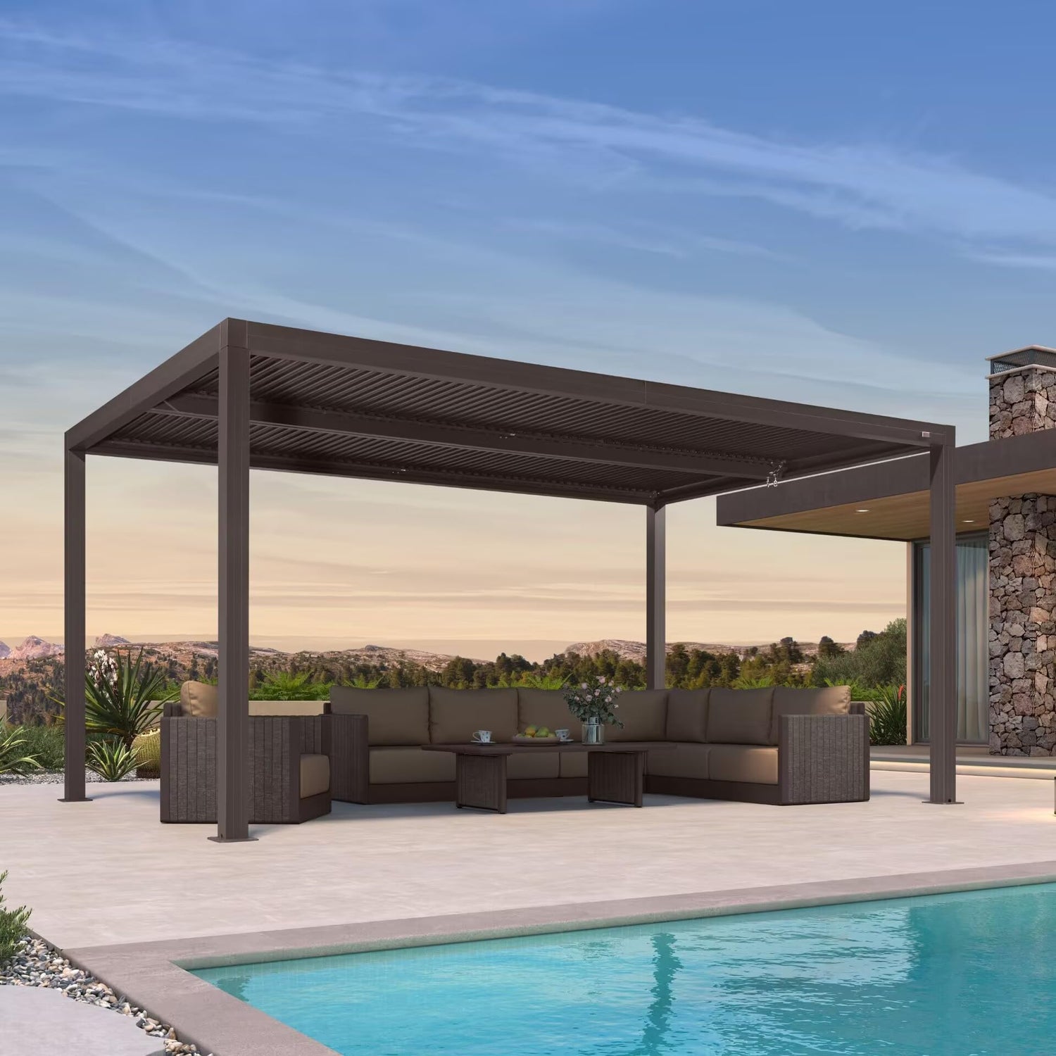- Hidden Water Gutter Design: The advanced integrated drainage system effectively diverts rainwater from the louvers into the posts in four directions and then to the ground, preventing water accumulation on the roof.