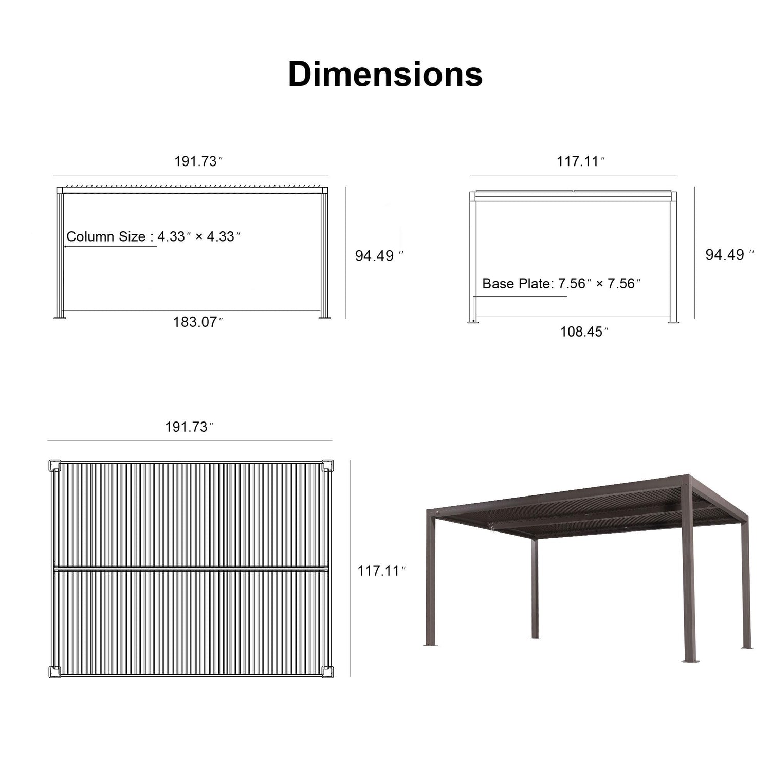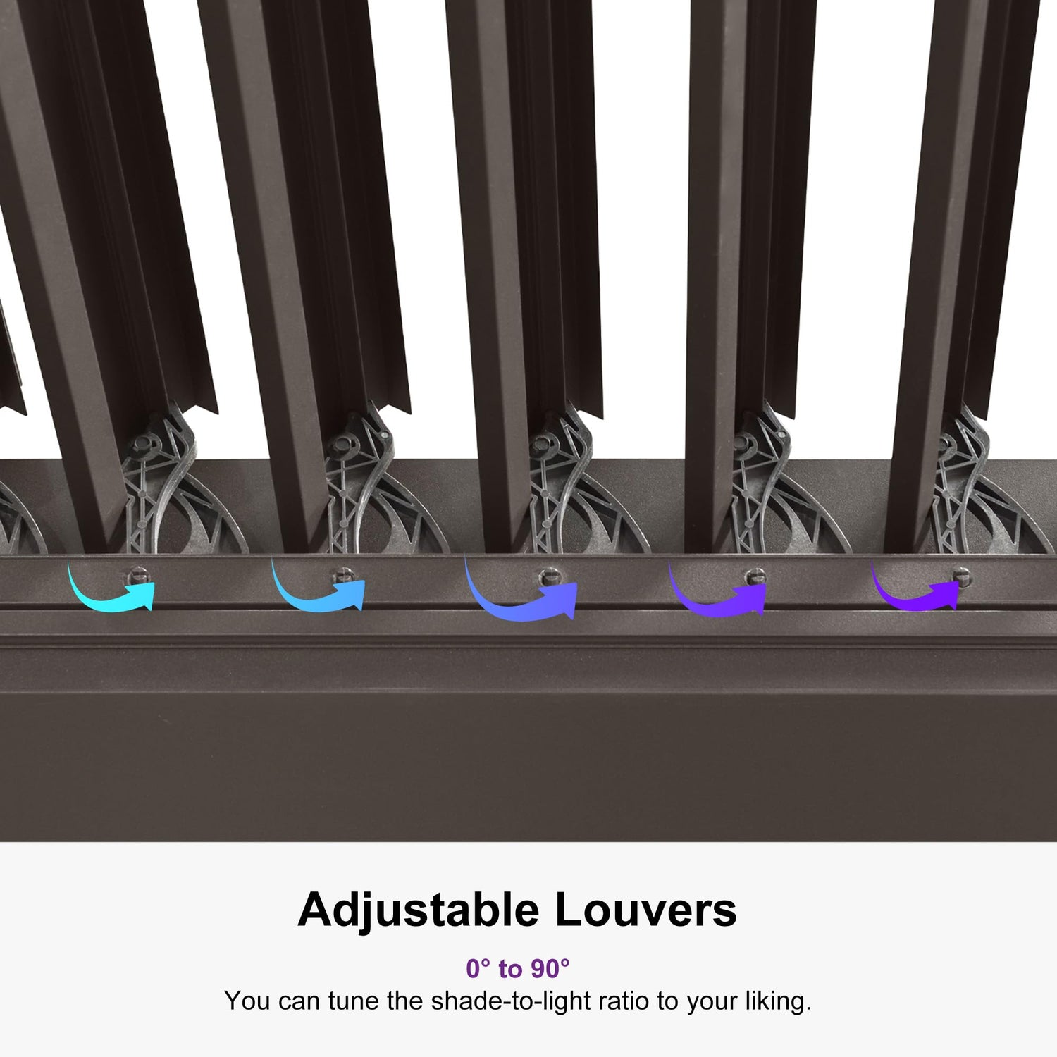 - 0° to 90° Adjustable Pergola Louvers: Unique design of two independent adjustable roofs customizes the shade up to 160 square feet, allowing you to do different things in two adjacent areas.