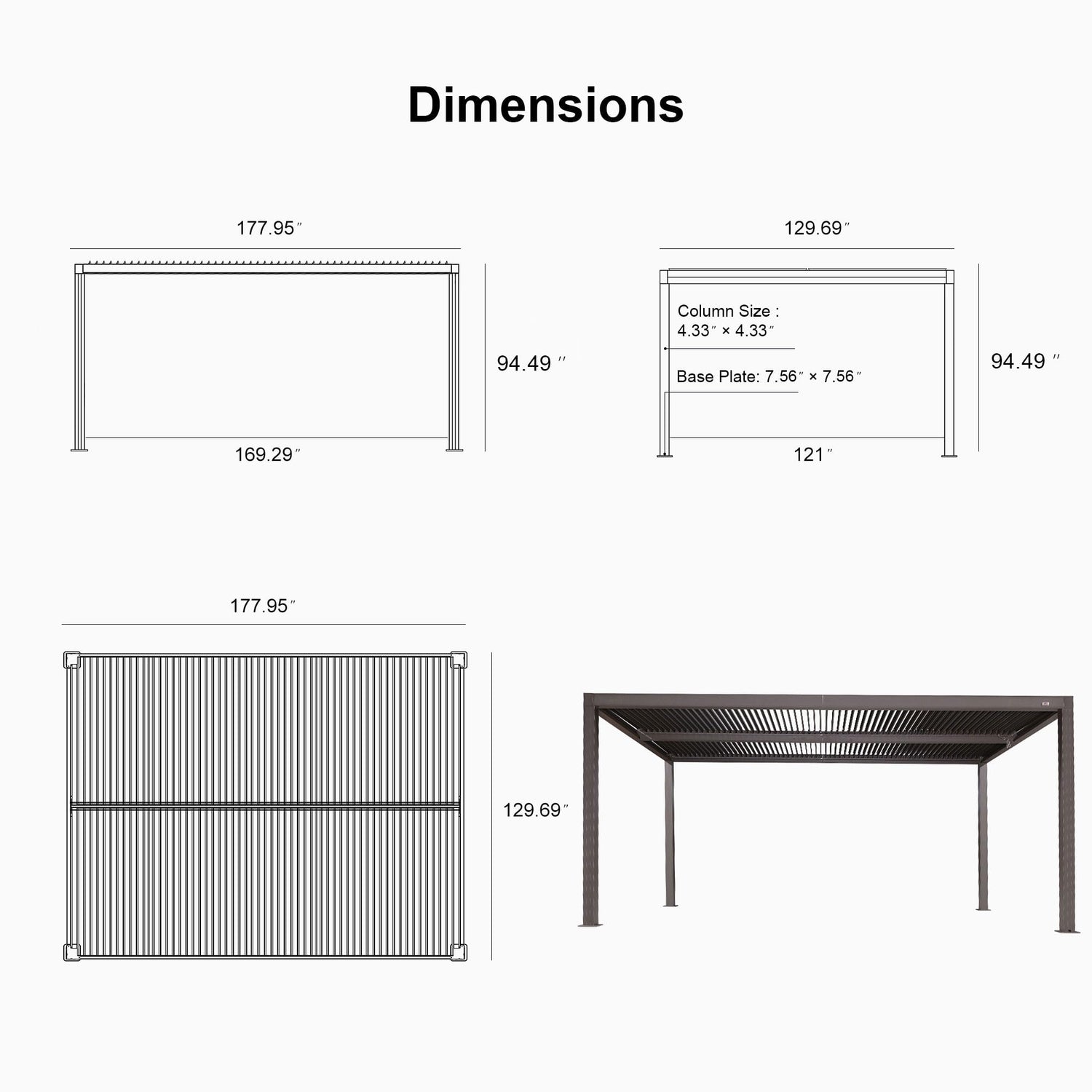- Reinforced Construction: The durable aluminum framework and improved larger beam size ensure the pergola withstands 60 mph winds.