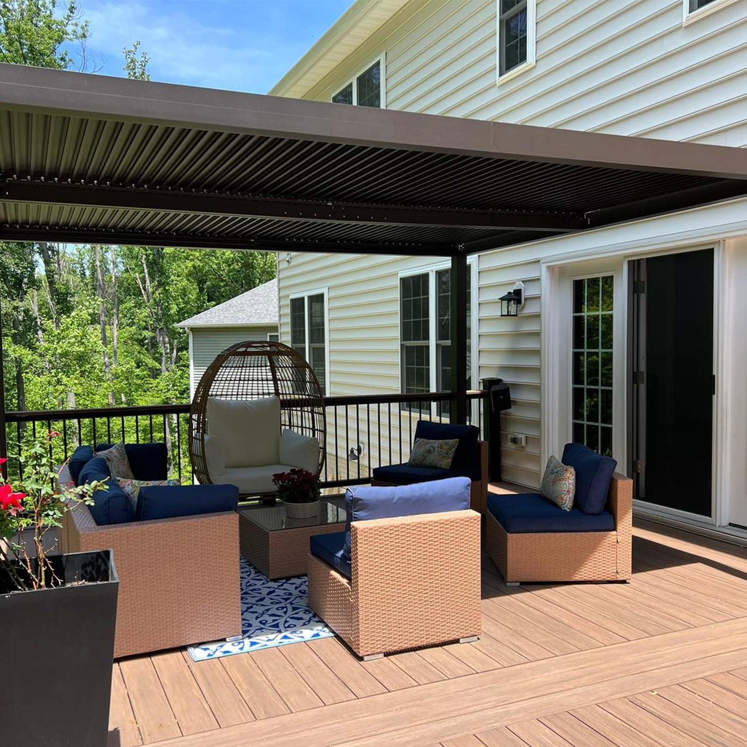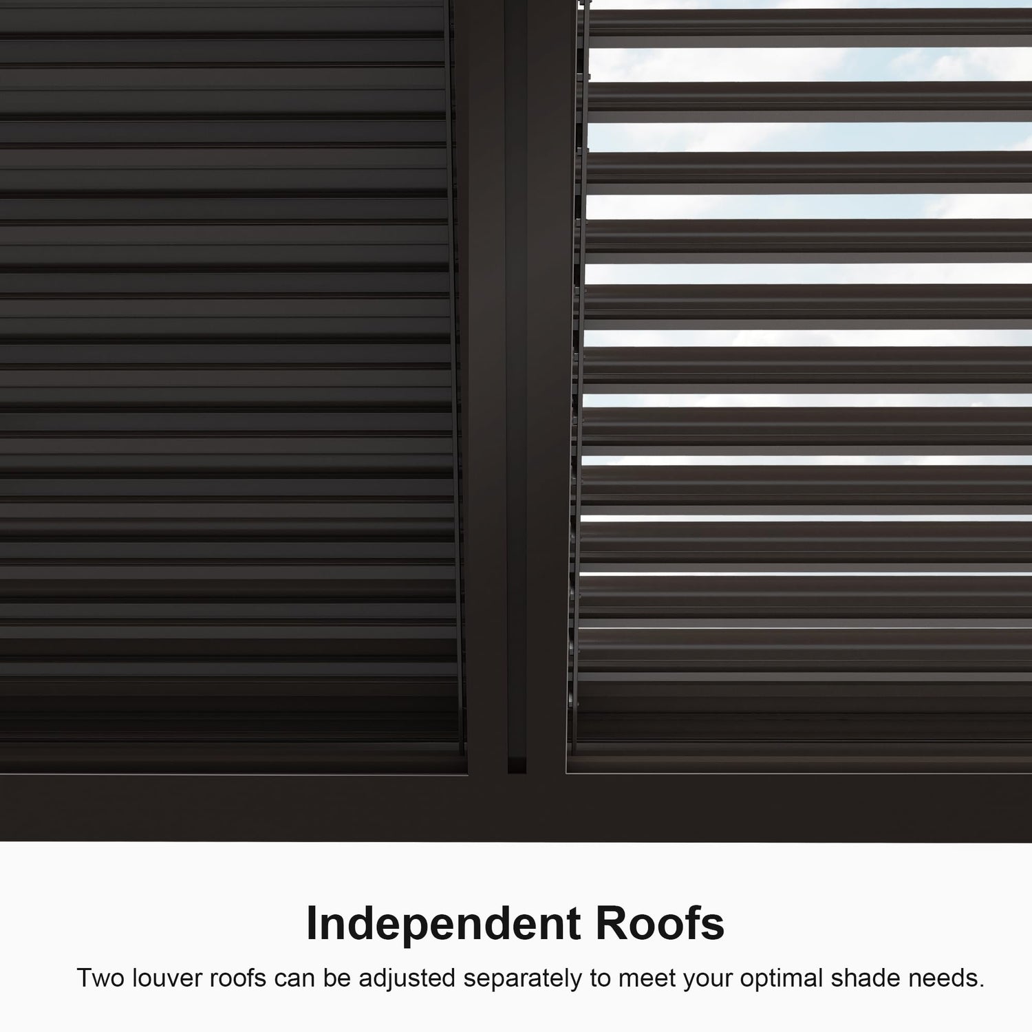 - 0° to 90° Adjustable Pergola Louvers: Unique design of two independent adjustable roofs customizes the shade up to 165 square feet, allowing you to do different things in two adjacent areas.