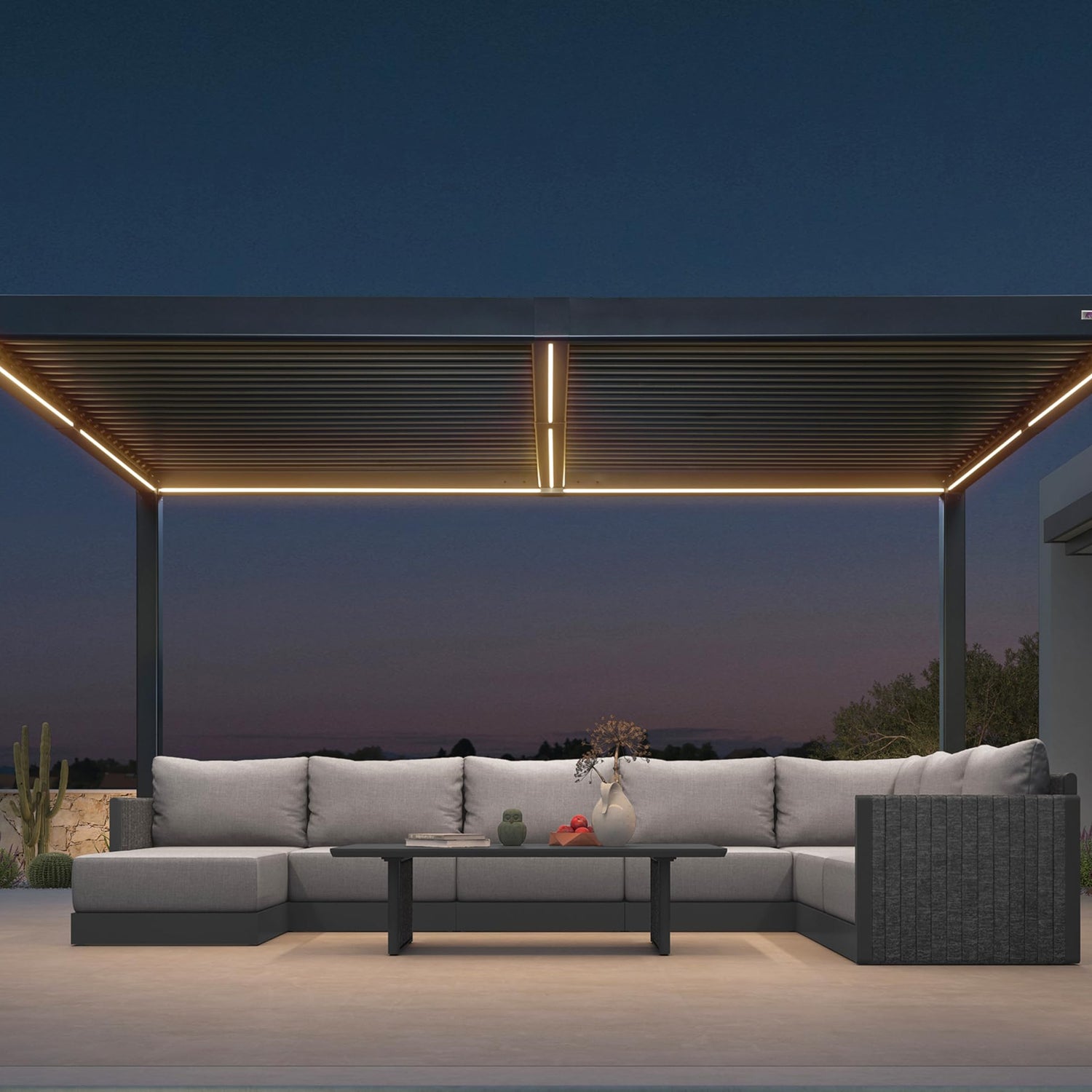 - Multifunctional LED Strip: This louvered pergola features an integrated LED strip light with controller, allowing you to adjust brightness (Low, Medium, High) and color temperature (Cool, Warm, Neutral) to create the perfect ambiance for any setting.