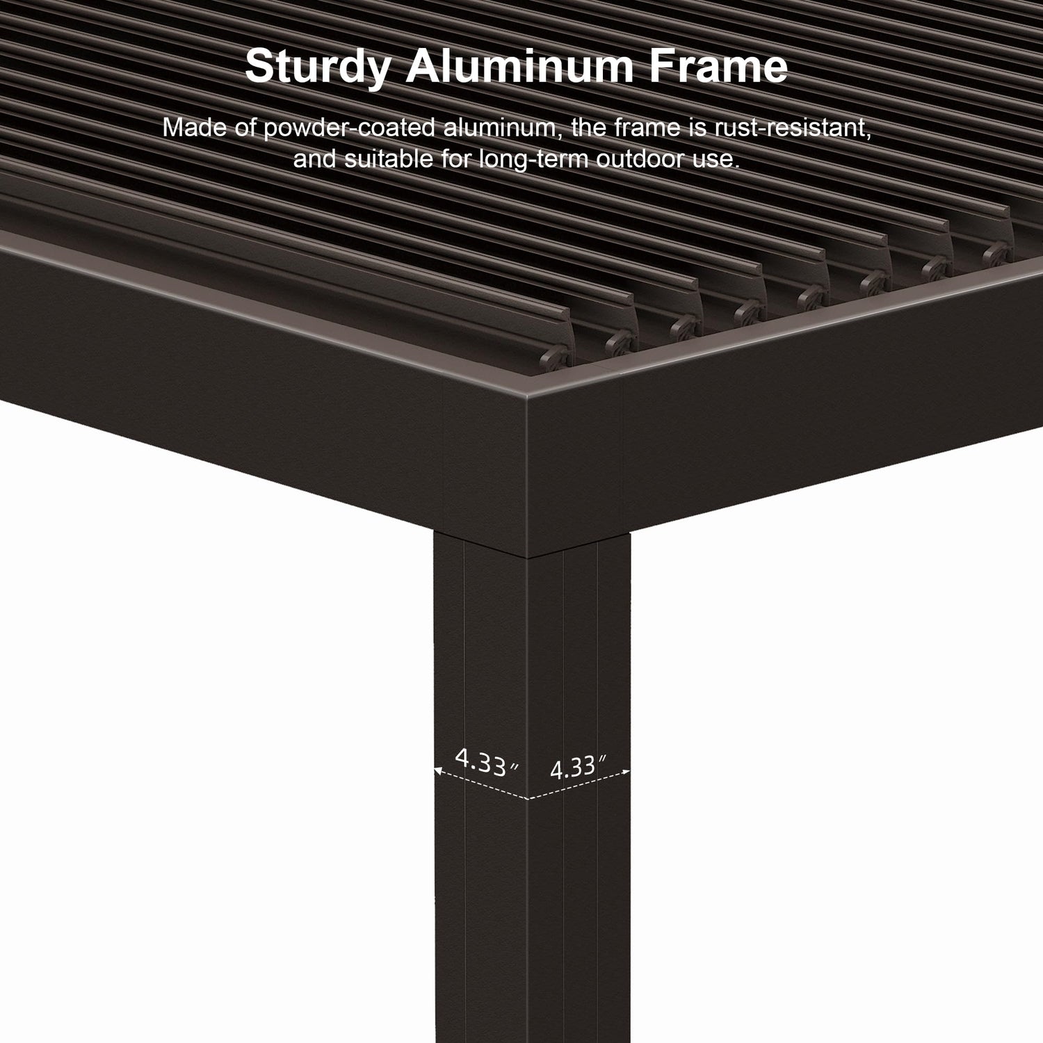 • Reinforced Construction: The durable aluminum framework and improved larger beam size ensure the pergola withstands 60 mph winds.
