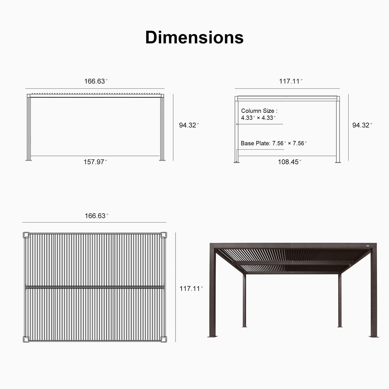 • Dimensions: The pergola size is 10' × 14' with roller blinds for two short and one long beam side. Roller blinds are only suitable for PURPLE LEAF louvered pergola.