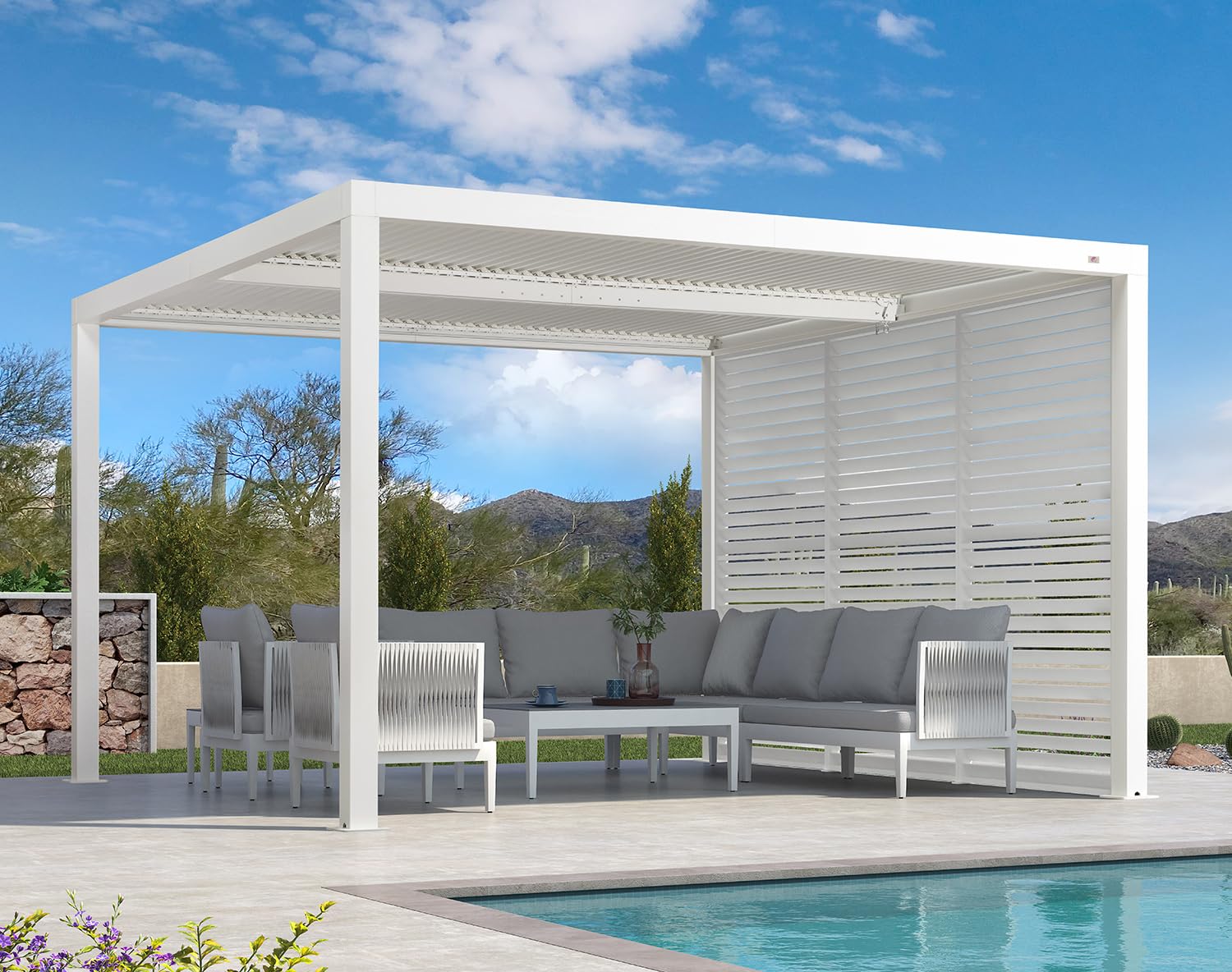 • All-Aluminum Construction: Made from high-quality aluminum, the louvered wall is durable and withstands rust, peeling, and fading, ensuring protection for your patio furniture in all weather conditions
