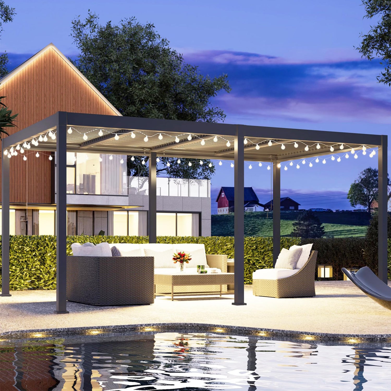- 🏡【Versatile Adjustable Roofs】- Featuring two independently adjustable aluminum roofs, our pergola allows you to easily control the amount of sunlight and shade over an area of up to 130 square feet. Adjust the roof from 0°to 90° to enjoy the perfect balance of sun and shelter, suitable for all your outdoor gatherings, be it parties, BBQs, or quiet family time.