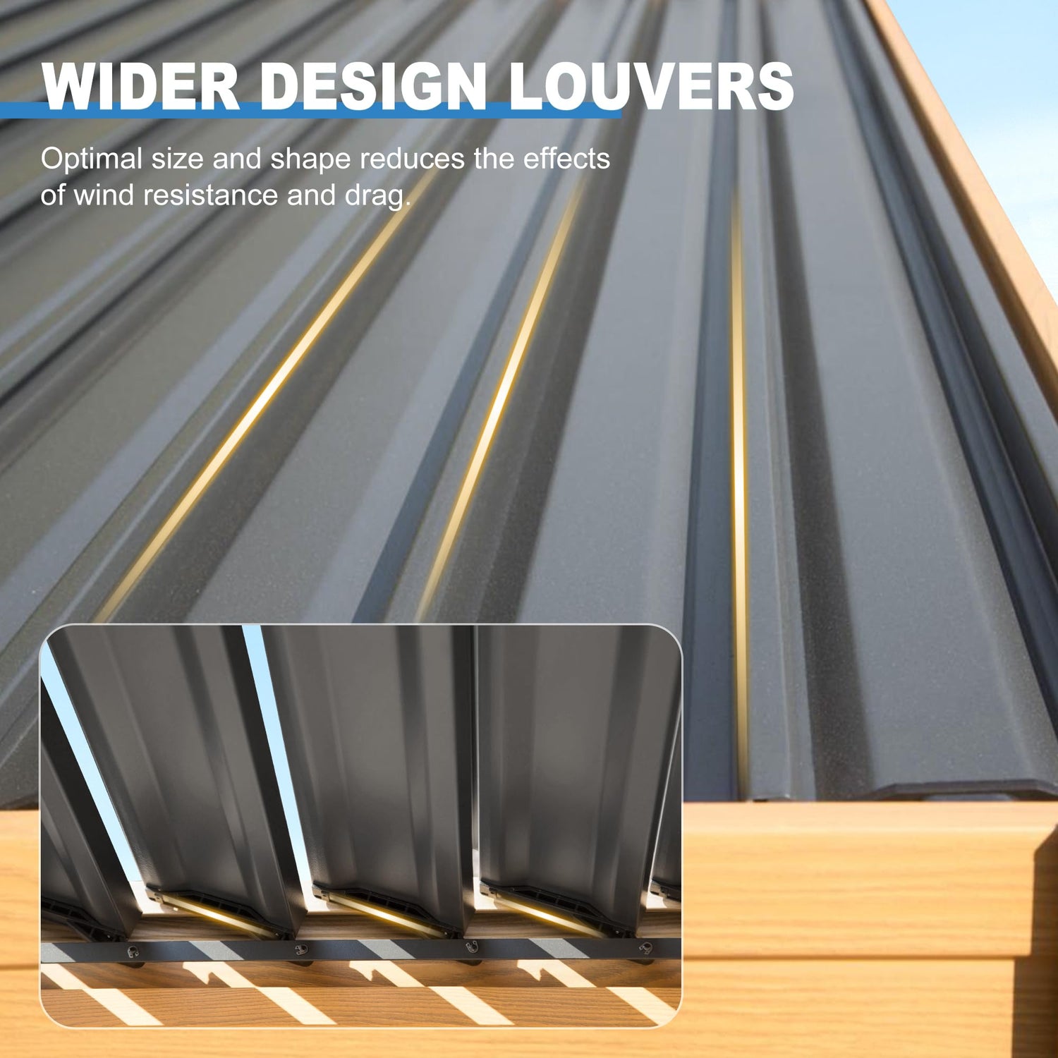 - 🌞Premium Material Construction- This louvered pergola is made of a powder-coated aluminum frame and tilting louvered roof of galvanized steel which can withstands up to 50 mph winds. High-quality material made our pergola rust-resistant, durable, scratch-resistant, slip-resistant, and fade-resistant.
