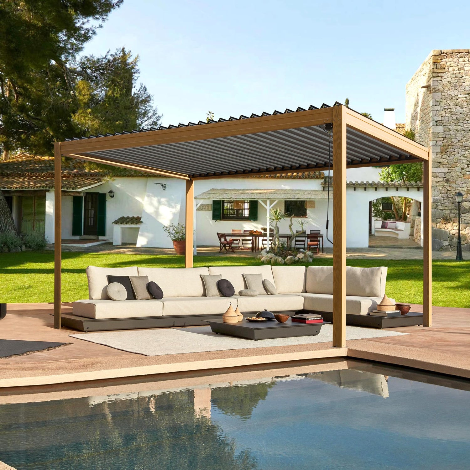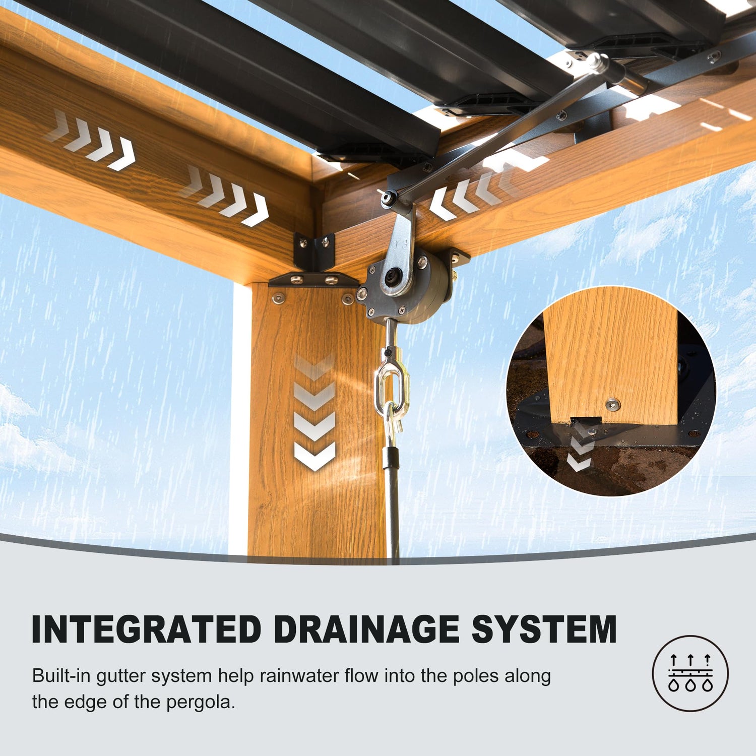 SHPAI 10’ x 13’ Louvered Pergola, Outdoor Pergola Aluminum Frame with Adjustable Rainproof Metal Roof, Permanent Sun Shade with Drainage System for Backyard, Garden and Lawn (Wooden Grain)