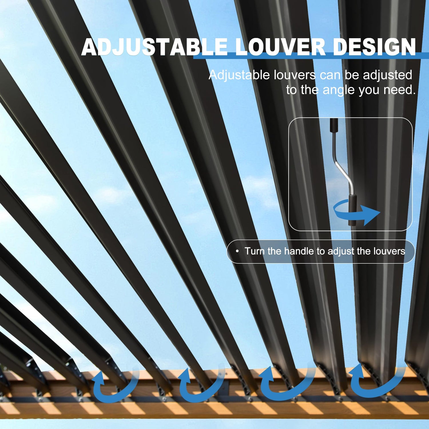 - 🌞Warm Prompt- Open the louvers in advance to avoid snow accumulation before strong snow weather, remove all the shade screen accessories before high winds or other extreme weather to protect your pergola.