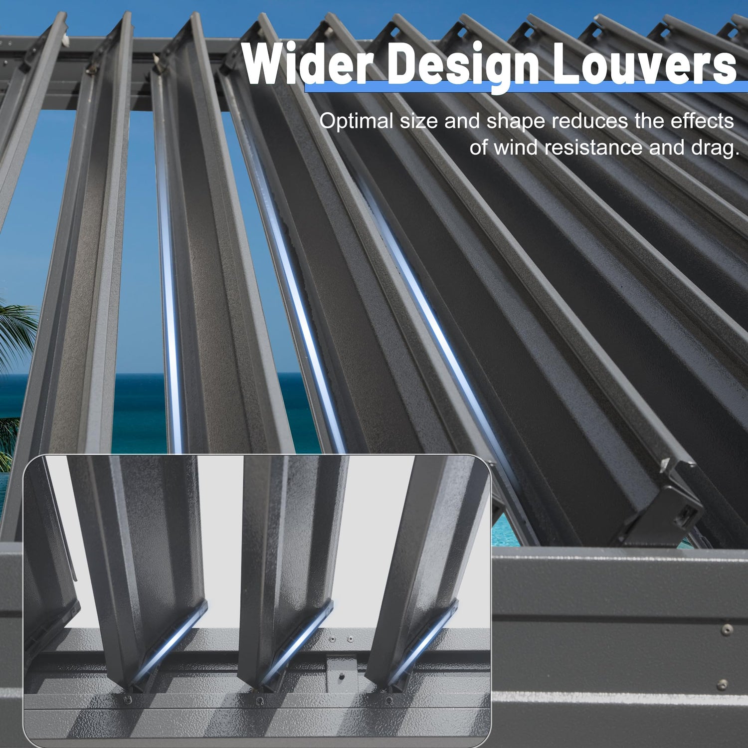• Premium Material Construction- This louvered pergola is made of a powder-coated aluminum frame and tilting louvered roof of galvanized steel which can withstands up to 40 mph winds. High-quality material made our pergola rust-resistant, durable, scratch-resistant, slip-resistant, and fade-resistant.