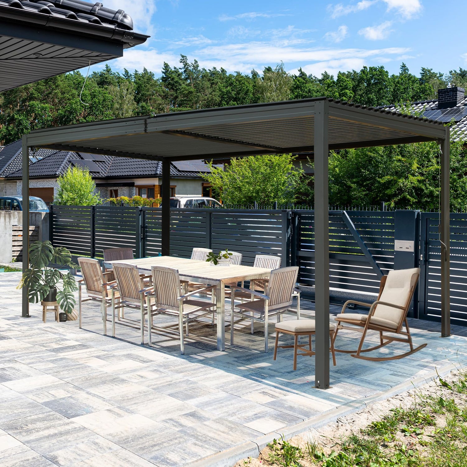 • Versatile Usage Pergola- Experience the best of both worlds with our modern louvered pergola, SHPAI pergola is a perfect choice for outdoor barbecue, party or daily relaxation with your family and friends. What’s more, you can use it as an outdoor parlor or even a parking shed for your car.