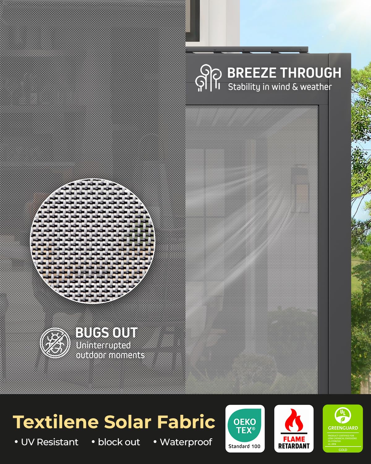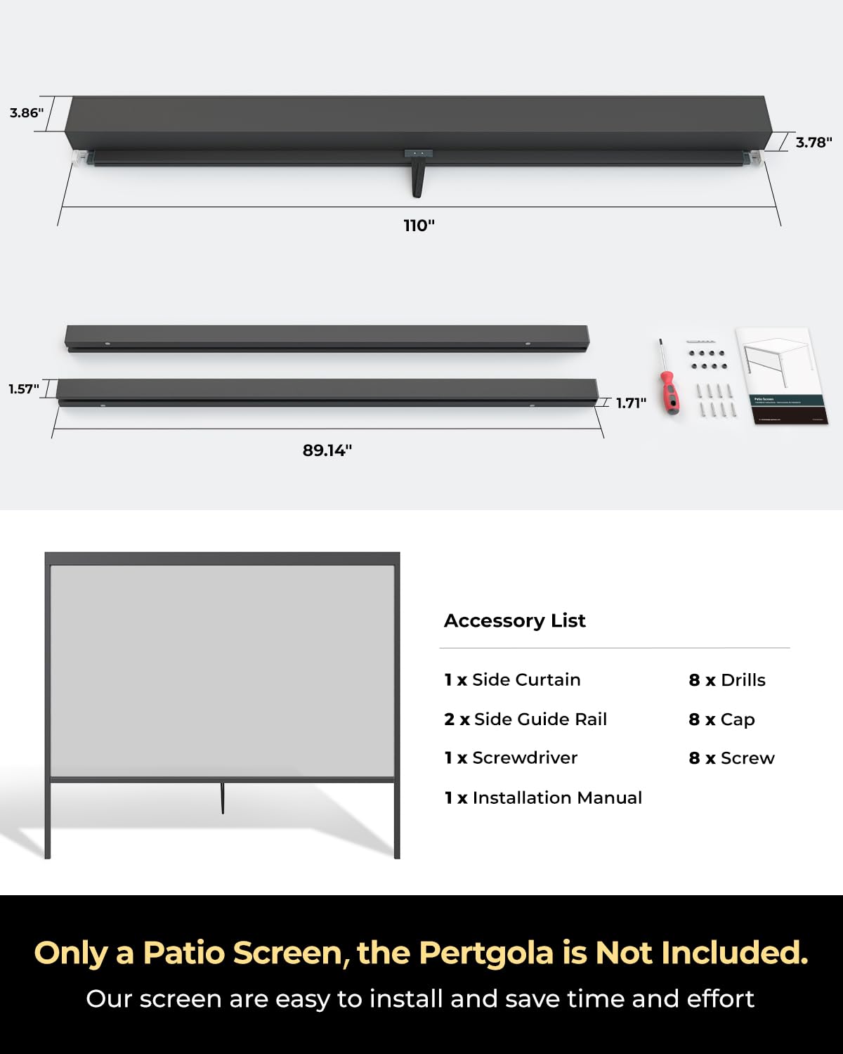 UNISHADES Retractable Pergola Sun Shade, for use on The Side of a 9.17'L × 7.75'H pergola to Block Out Light and Mosquitoes, not The pergola Itself.