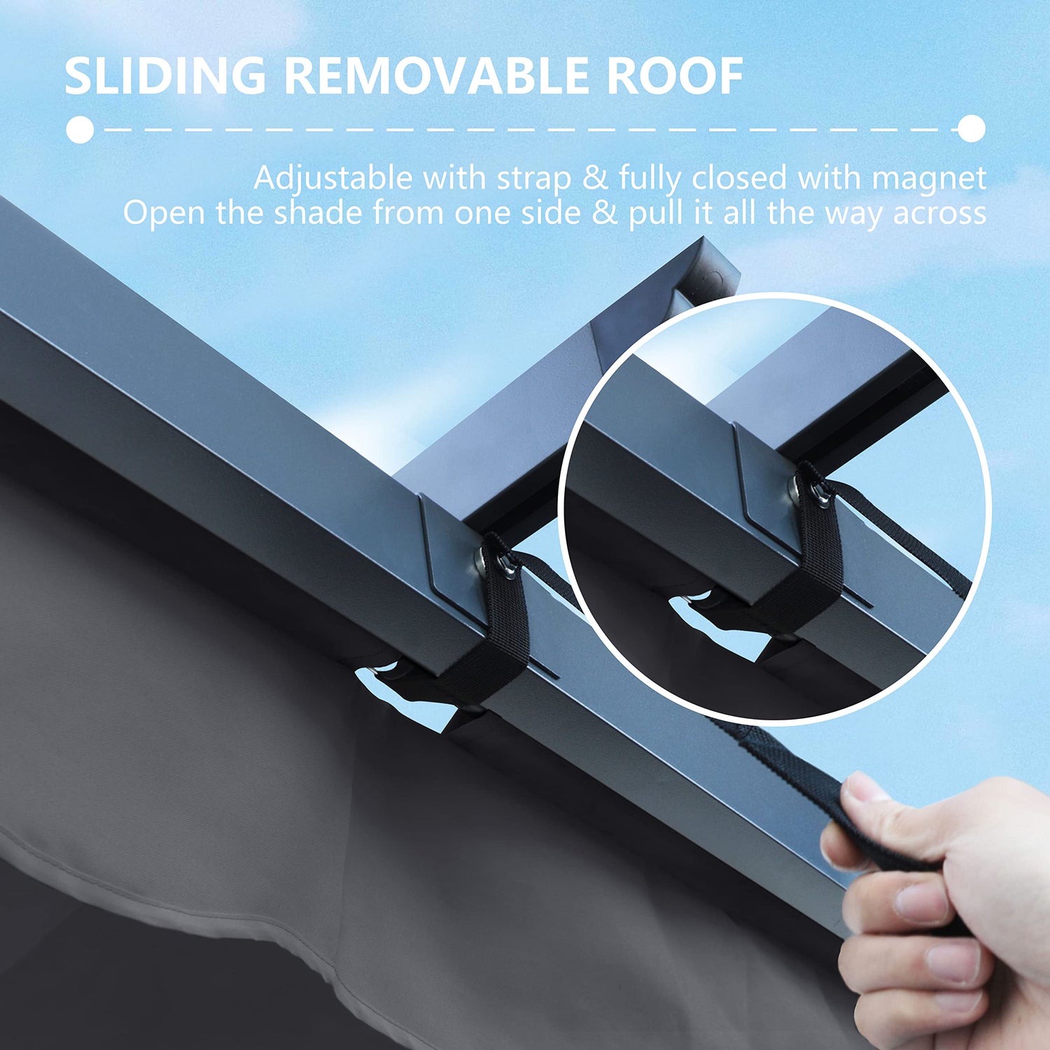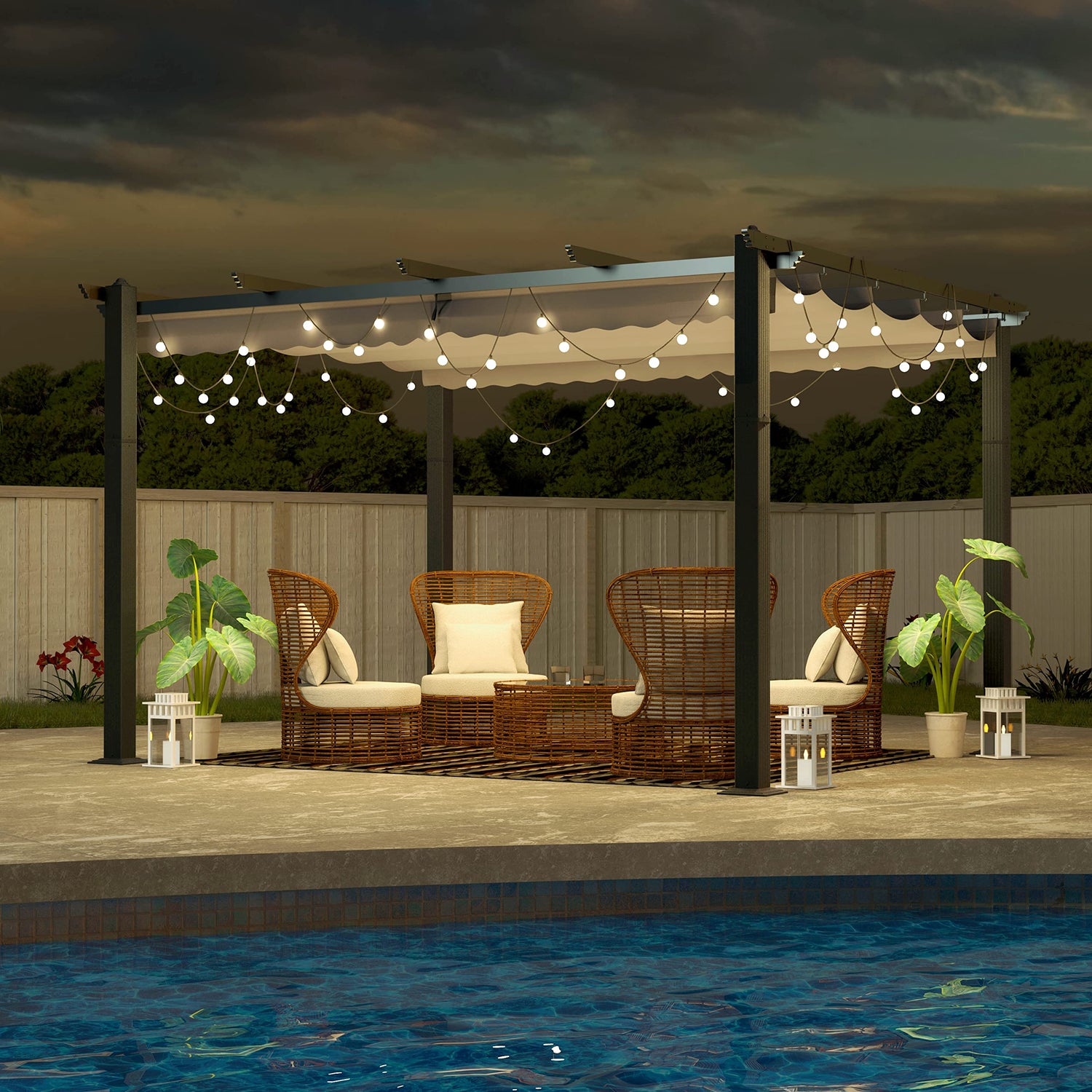 - QUALITY RETRACTABLE PERGOLA CANOPY - The retractable pergola canopy is made in enduring 220g/m² fabric with level 5+ PA coating, which made the canopy have better UV protection and water resistance abilities. Brings people more shelter from the sun and enjoyment in the hot summer. And the canopy can be removed in the event of high winds or during the winter months.