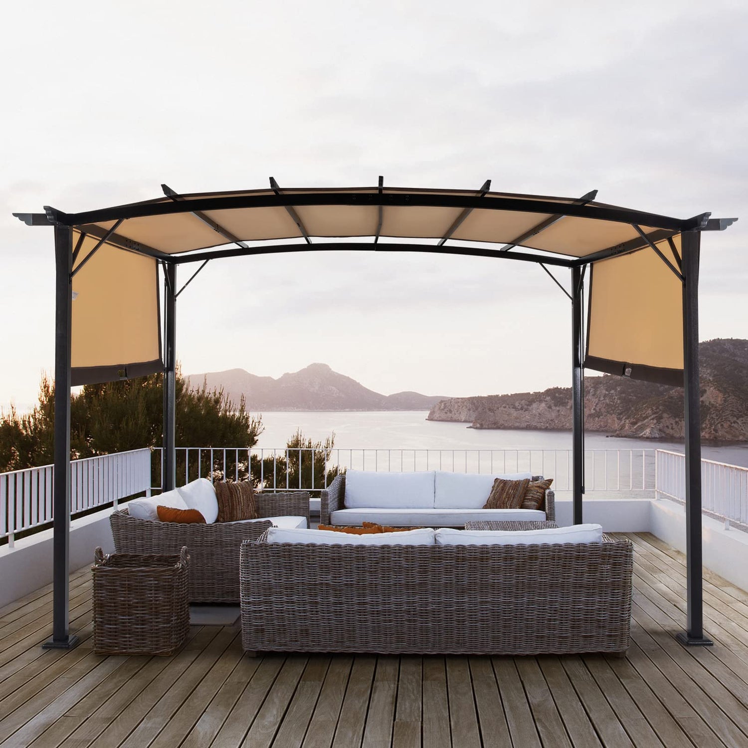 VINGLI 9’ x 12’ Outdoor Pergola with Adjustable Canopy, Steel Arched Patio Pergola Grape Trellis Pavilion Grill Gazebo for Backyard and Garden (Beige-9'x12')