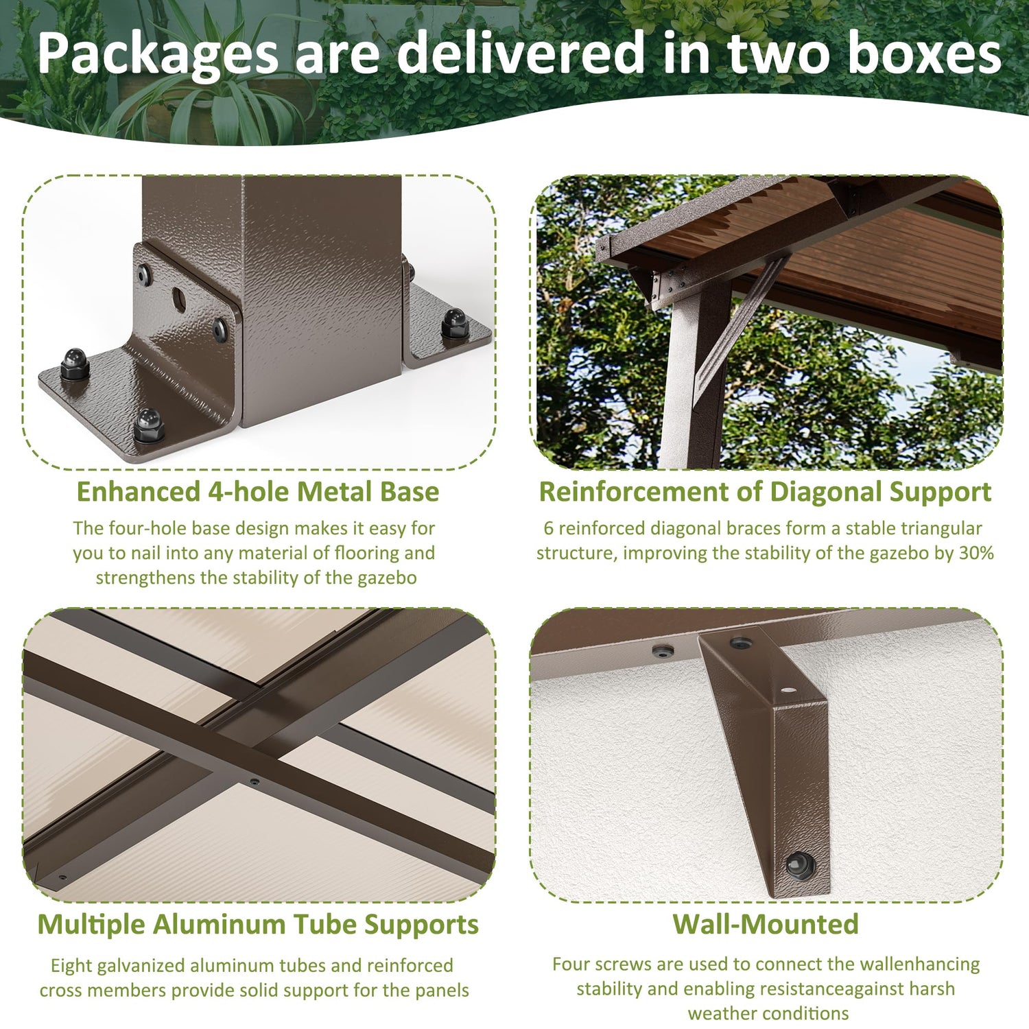 WKM 10X12 FT Gazebo,Gazebos on Clearance, Wall Mounted Gazebo, Pergolas and Gazebos Clearance, Lean to Gazebo Hard Top, Decks, Porch and Backyard