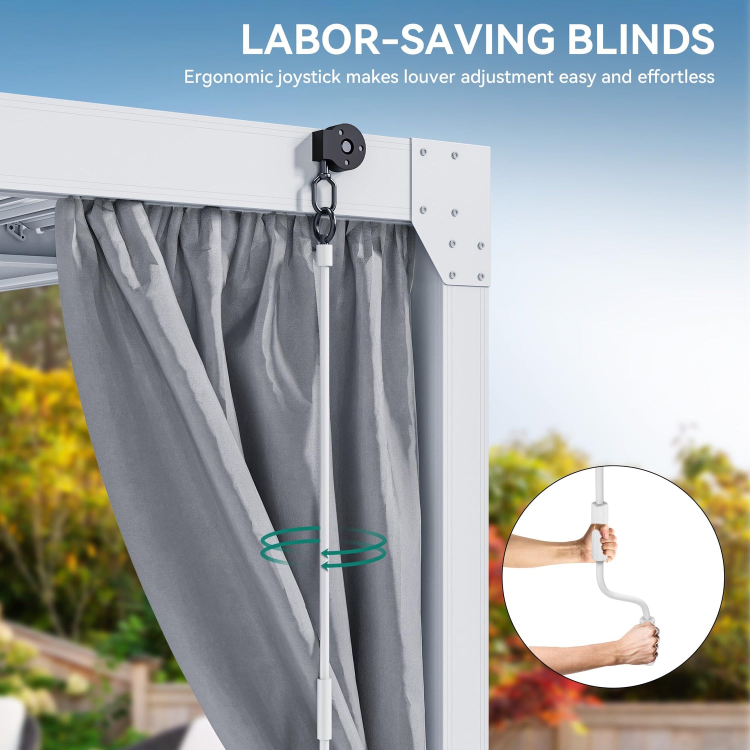 YITAHOME 10x13ft Louvered Pergola Outdoor Aluminum with Adjustable Roof Pergolas Sun Shade Shelter with Netting and Shaded Curtains for Lawns, Patio, Deck and Backyard, White
