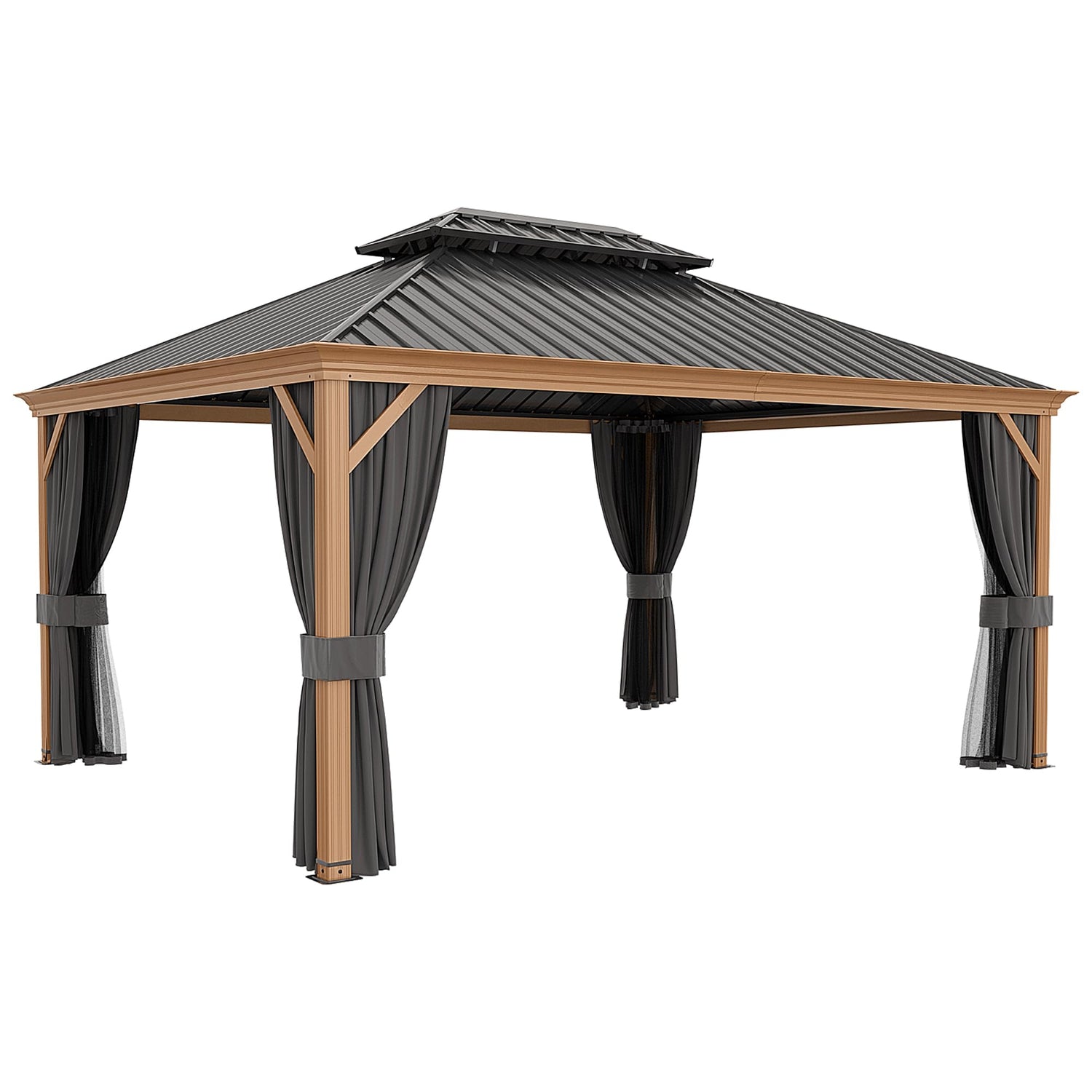 ZEPYARD 12x16 FT Hardtop Gazebo, Metal Outdoor Gazebo with Wood-Grain Coating, Netting and Curtains, Double Galvanized Steel Roof, Patio Hard Top Gazebo for Backyard, Deck, Poolside (Grey)