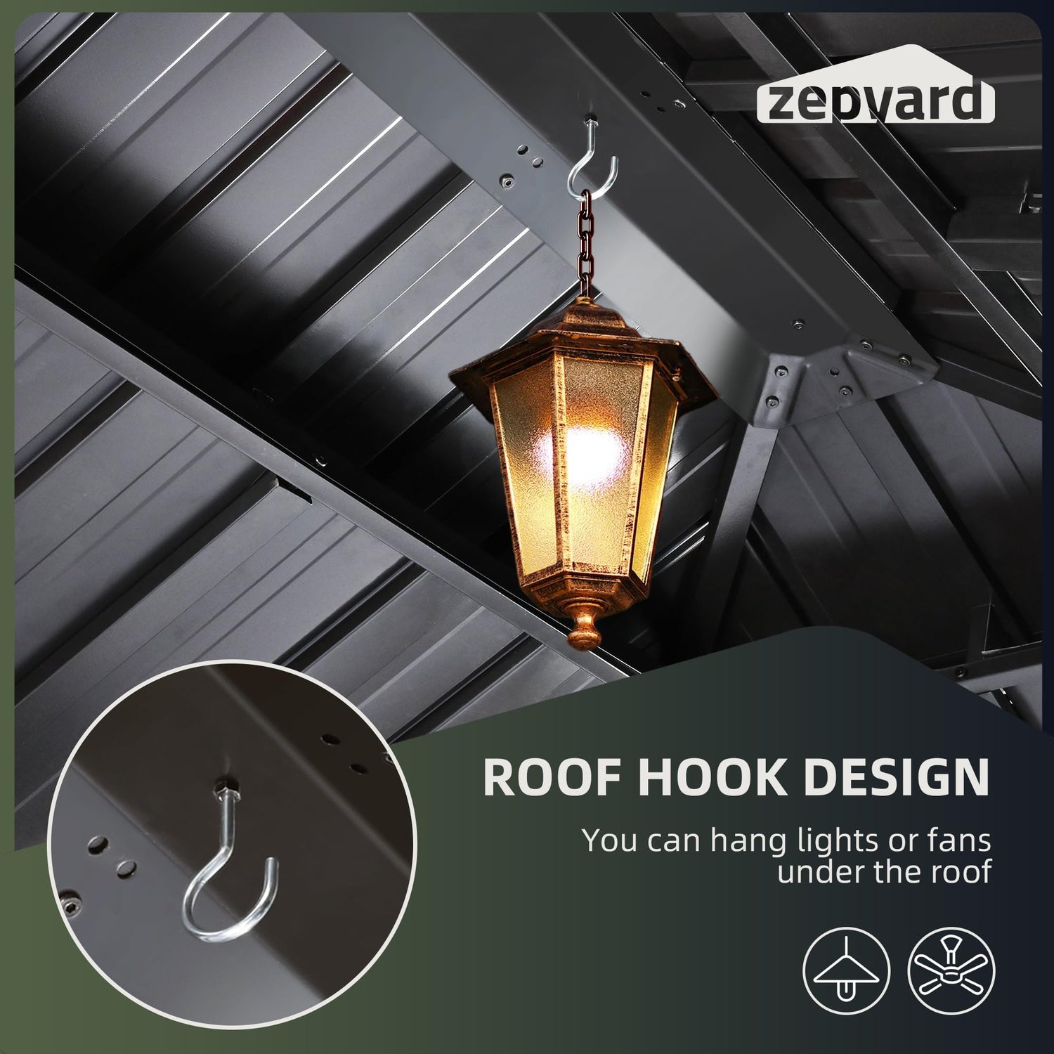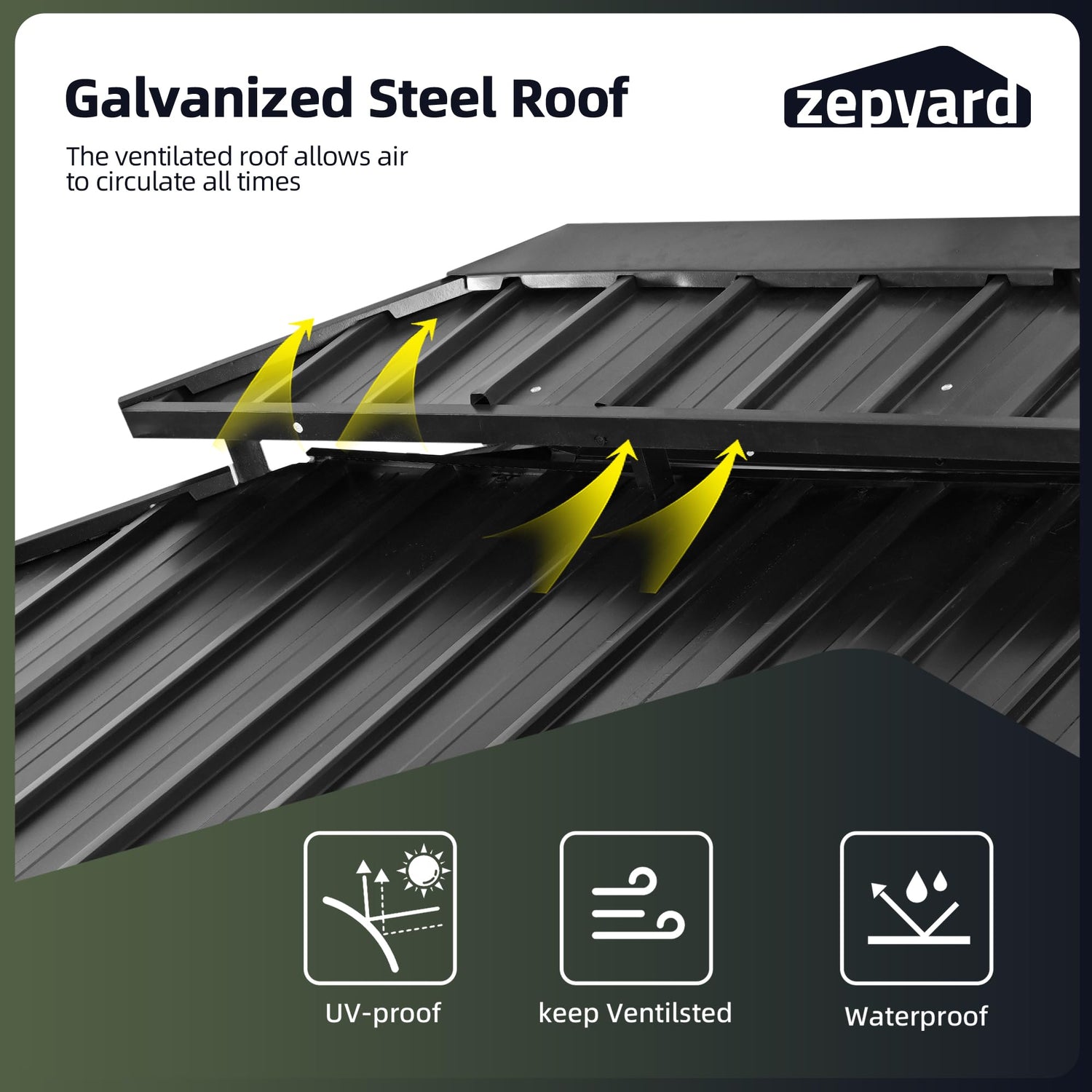 - Durable Galvanized Steel Dual-Layer Roof: Experience the ultimate blend of style and resilience with our hardtop gazebo featuring a robust galvanized steel dual-layer canopy. Engineered to provide exceptional sunshade and rain protection, it stands resilient against various weather conditions, ensuring prolonged longevity.