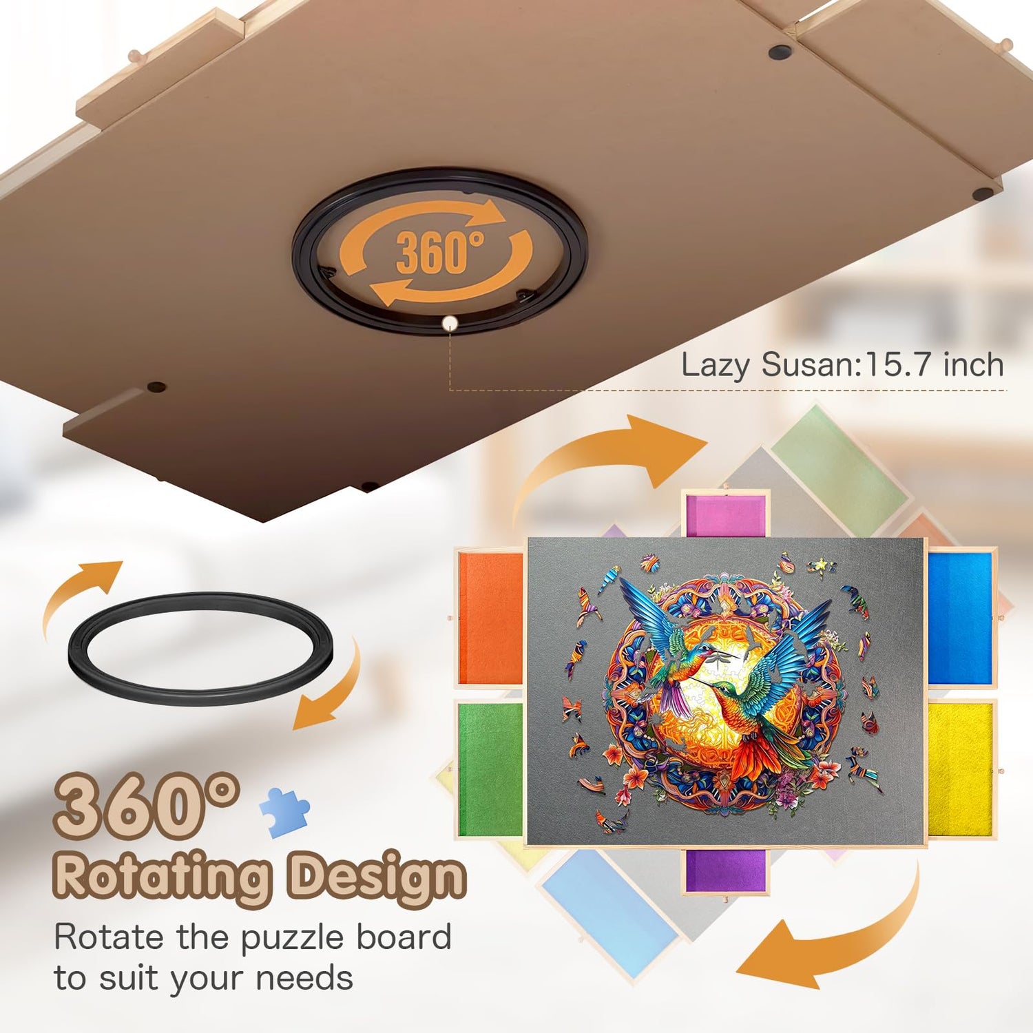 - 【Puzzle board rotating Design】 With our rotating puzzle table, you can assemble puzzles happily and efficiently. Easily find your puzzle pieces to reach any part you need, with a fantastic rotation system for smooth 360°rotation.