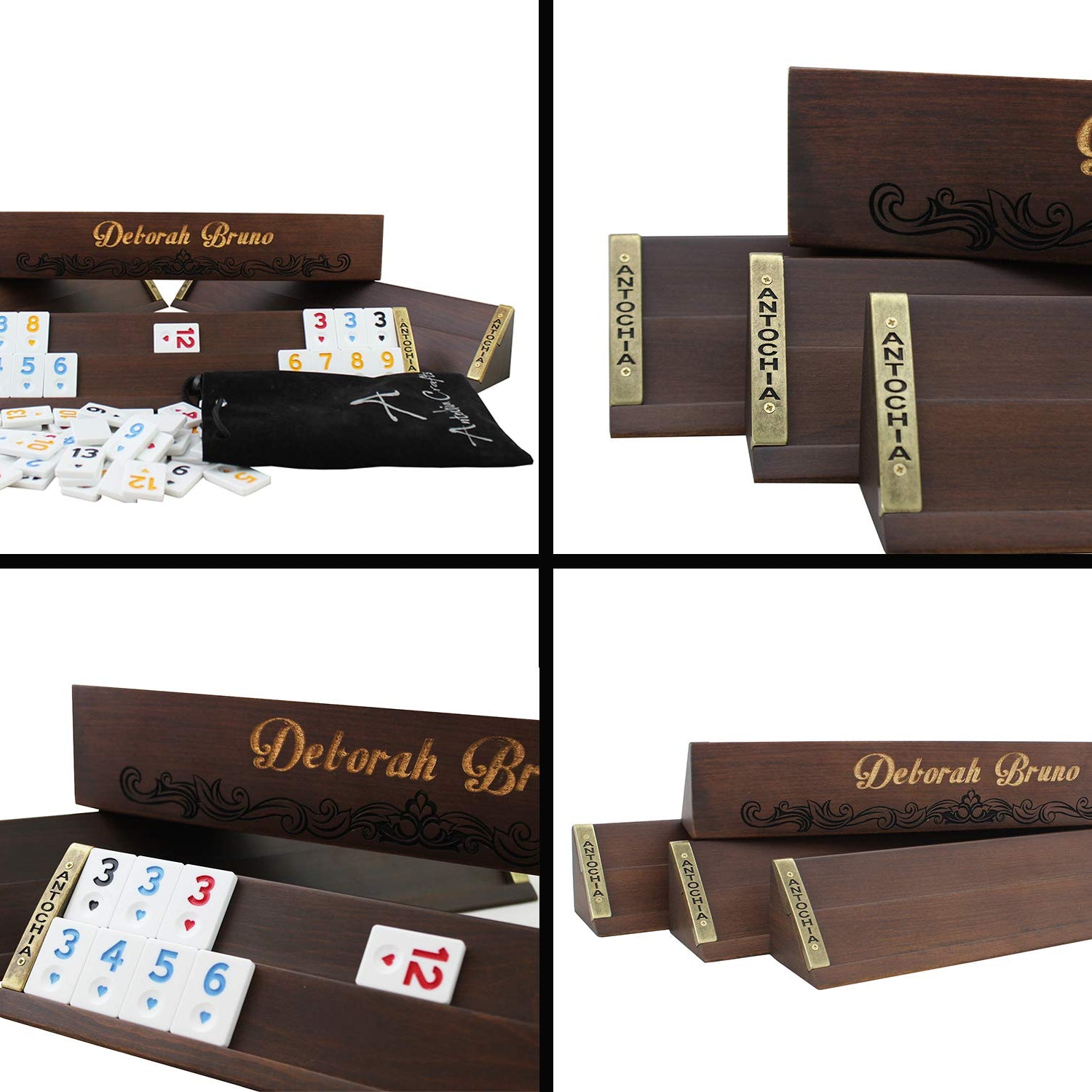 Antochia Crafts Personalized Rummy Game Complete Set - Wooden Custom Rummy Racks and Tiles