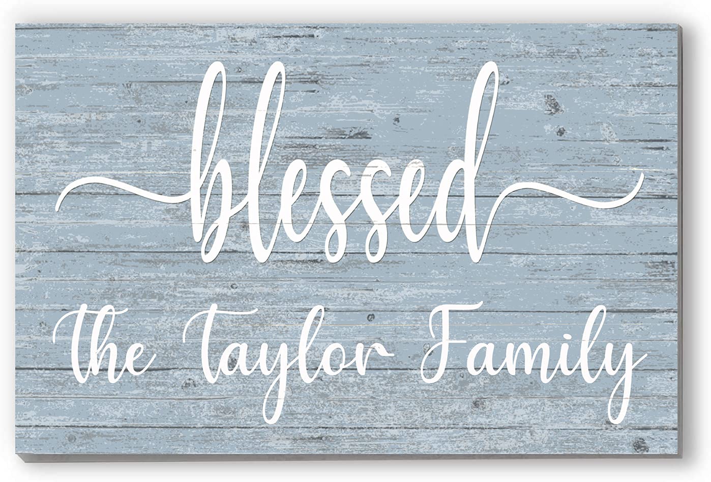 Blessed Sign Custom Family Name Sign Personalized - Solid Wood - Wall Art for Anniversary, New Home, Mother's Day, Couples Gift Idea (Blue)