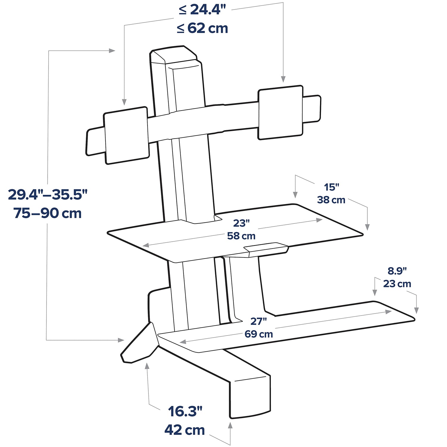 Details: Advanced ergonomics? You got it. The timeless design of the WorkFit-S makes it our best solution for flexible and comfortable working. This height-adjustable standing desk easily attaches to your desktop and adds a worksurface that stays with you as you sit or stand. Just lift or lower the WorkFit-S with the push and pull of a hand and tweak the optional weight settings for no-sweat adjustment. Then fine-tune your dual monitor mount and keyboard tray placement individually for how you work best. Supports two monitors up to 24 inches in size and includes a full 5-year warranty. · Adaptable design: Our most stable, ergonomic solution · Smooth adjustment: Full workstation moves easily up and down · Front surface-mount: Fits desks flush against walls or shallow surfaces · Keyboard tray: Ergonomic, drop-down position with back-tilt feature · Double productivity: Supports two monitors up to 24 inches · Personalized views: Rotate screens 360° to match your workflow Our professional-grade products undergo rigorous motion tests so you can enjoy trouble-free adjustments for the long-haul. WorkFit-S is factory-tested to withstand up to 4 times its weight capacity, so you don’t have to worry about sag or height-drop as you work. Plus, WorkFit-S is certified in compliance with ANSI/BIFMA indoor air quality standards for VOC emissions. Available in black.