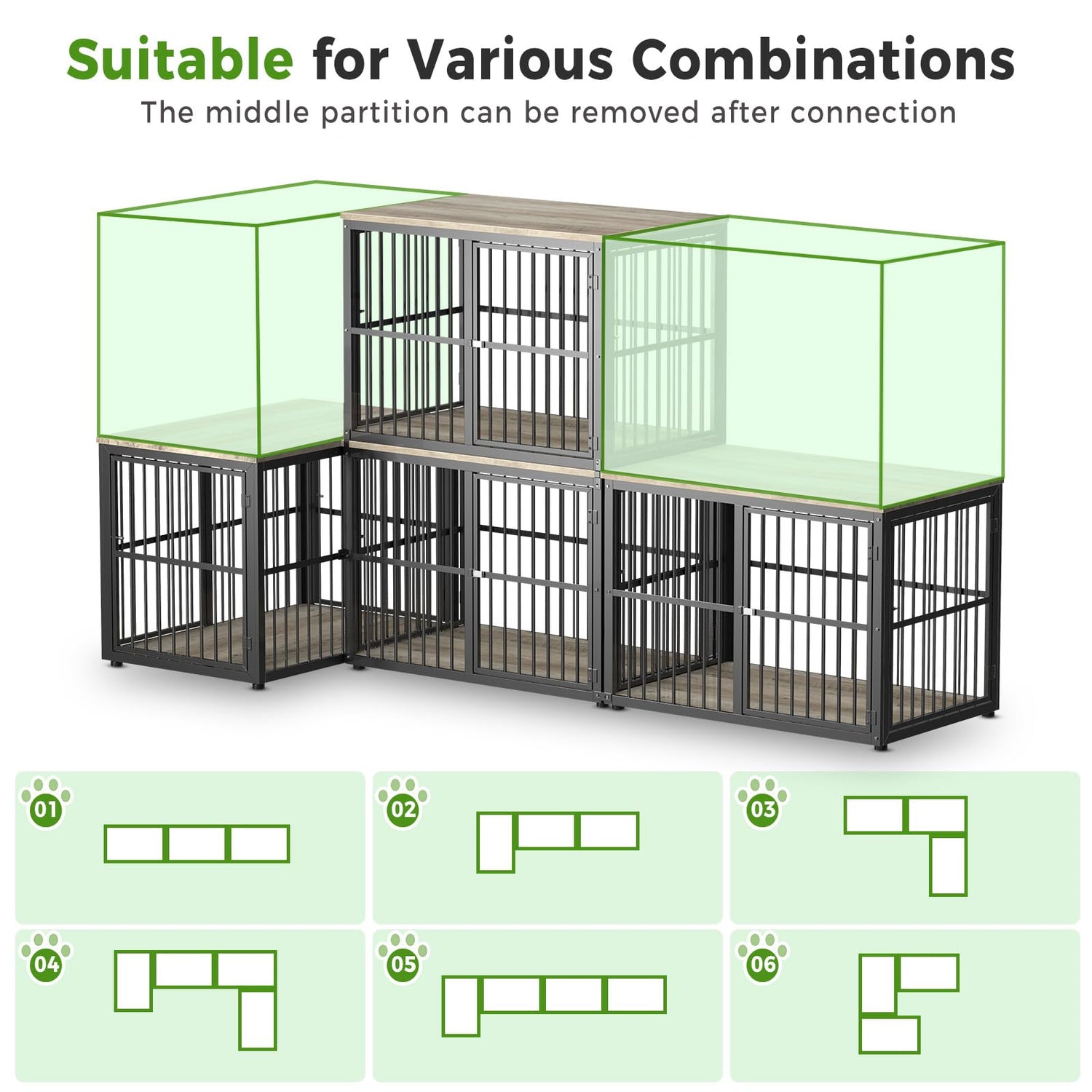 - 【Flexible Combination Options】 This versatile dog crate can be effortlessly transformed between a large TV dog crate, a stackable dog crate, and an L-shaped corner crate; It can also be separated into two individual crates for multiple dogs