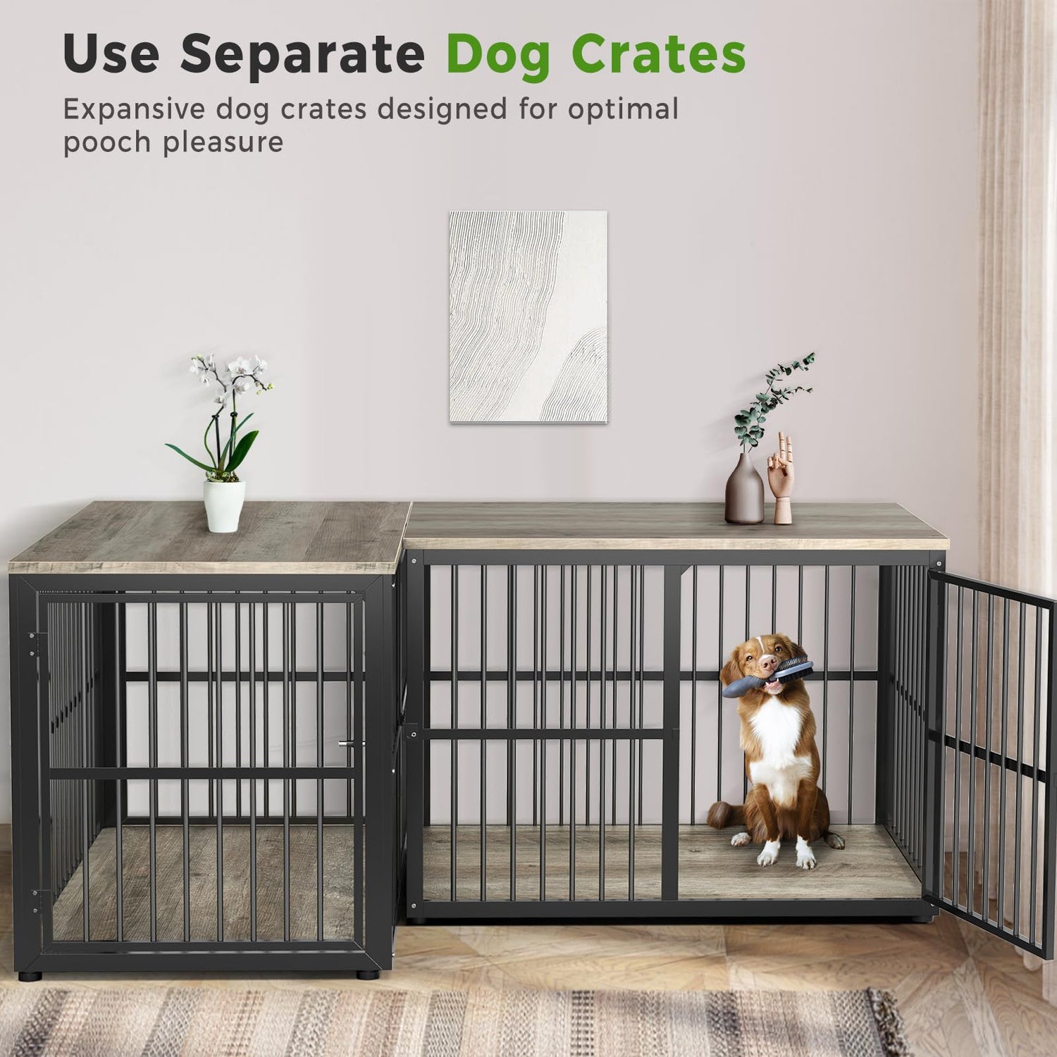 - 【Sturdy and Chew-Resistant】This dog crate furniture for 2 dogsis made of premium particle board and iron pipe, which is stronger and more chewy; It will accompany your dog throughout the growing stages