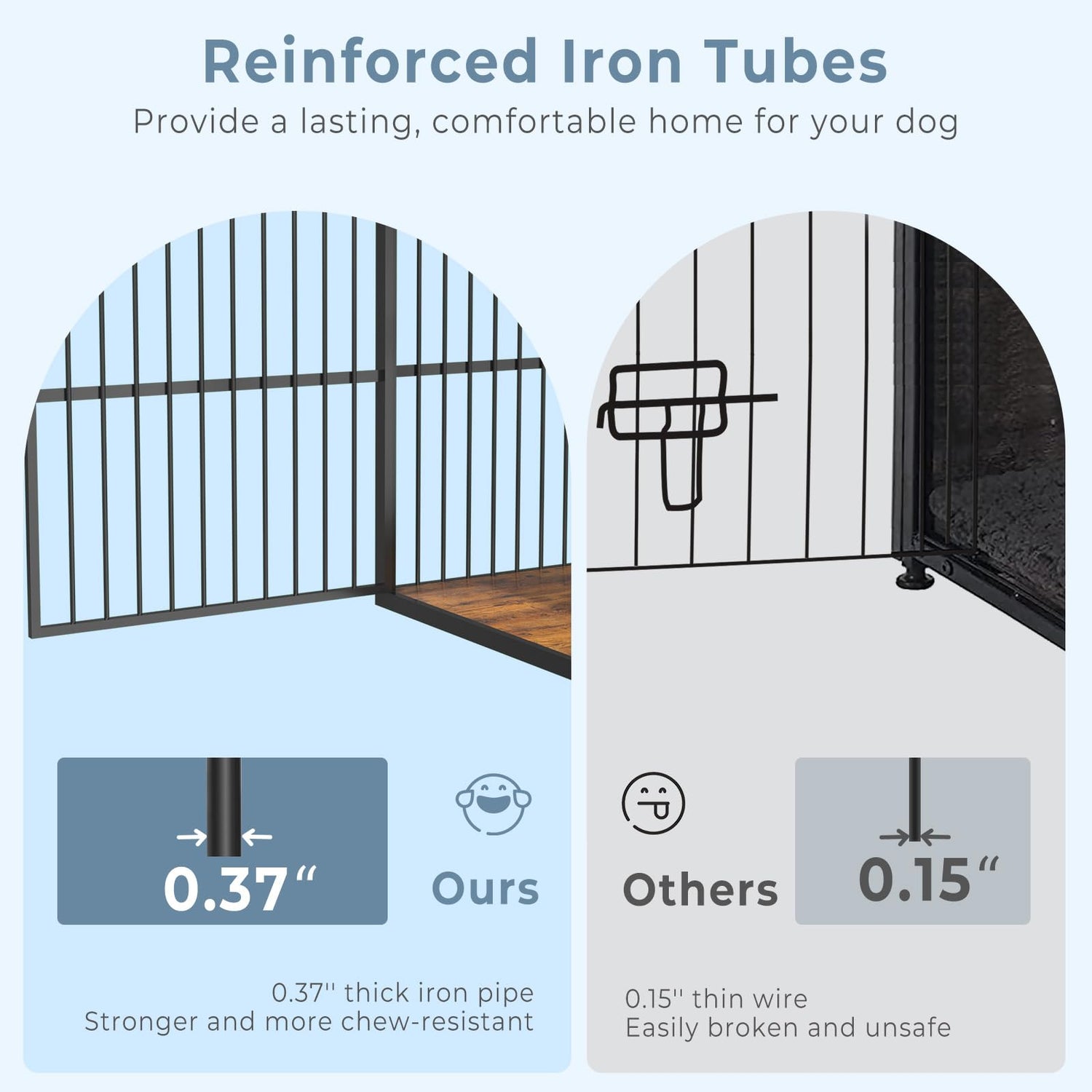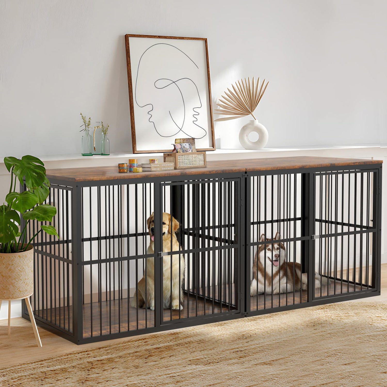 - 【Sturdy and Chew-Resistant】This dog crate furniture for 2 dogs is made of premium particle board and iron pipe, which is stronger and more chewy; It will accompany your dog throughout the growing stages
