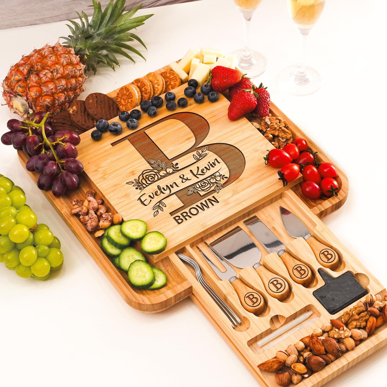 Personalized Charcuterie Board Gifts Set, Custom Large Cheese Board, Charcuterie Board for Wedding, Anniversary, Birthday, Housewarming, Engagement, Party, New Home Gift Couple, Fathers Day, Christmas
