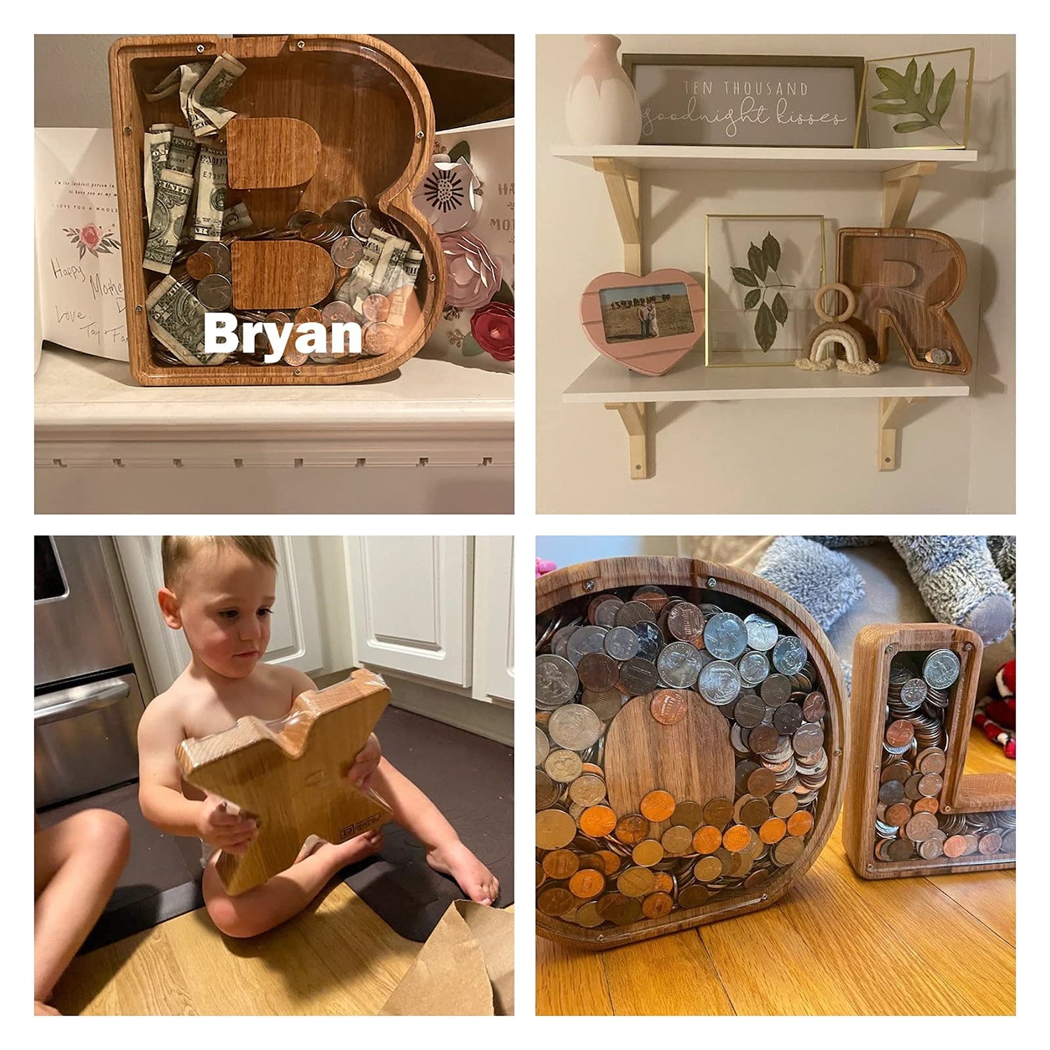 - Perfect Gift: This custom wooden letter piggy bank is a unique gift for adults or kids, suitable for birthdays, Christmas, vacations, baby shower, etc.,any issues with our wooden initial bank, please contact us,we will solve the problem for you at the first time