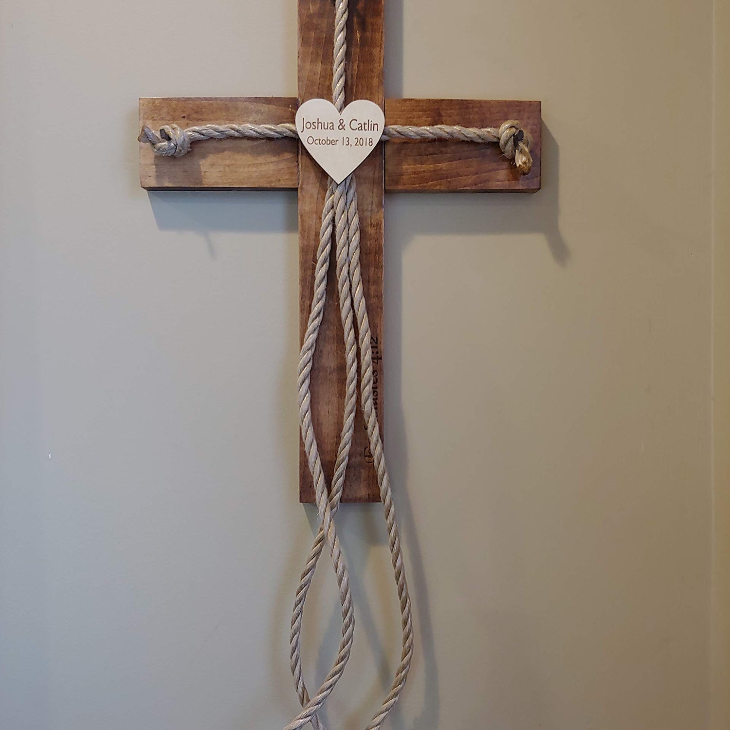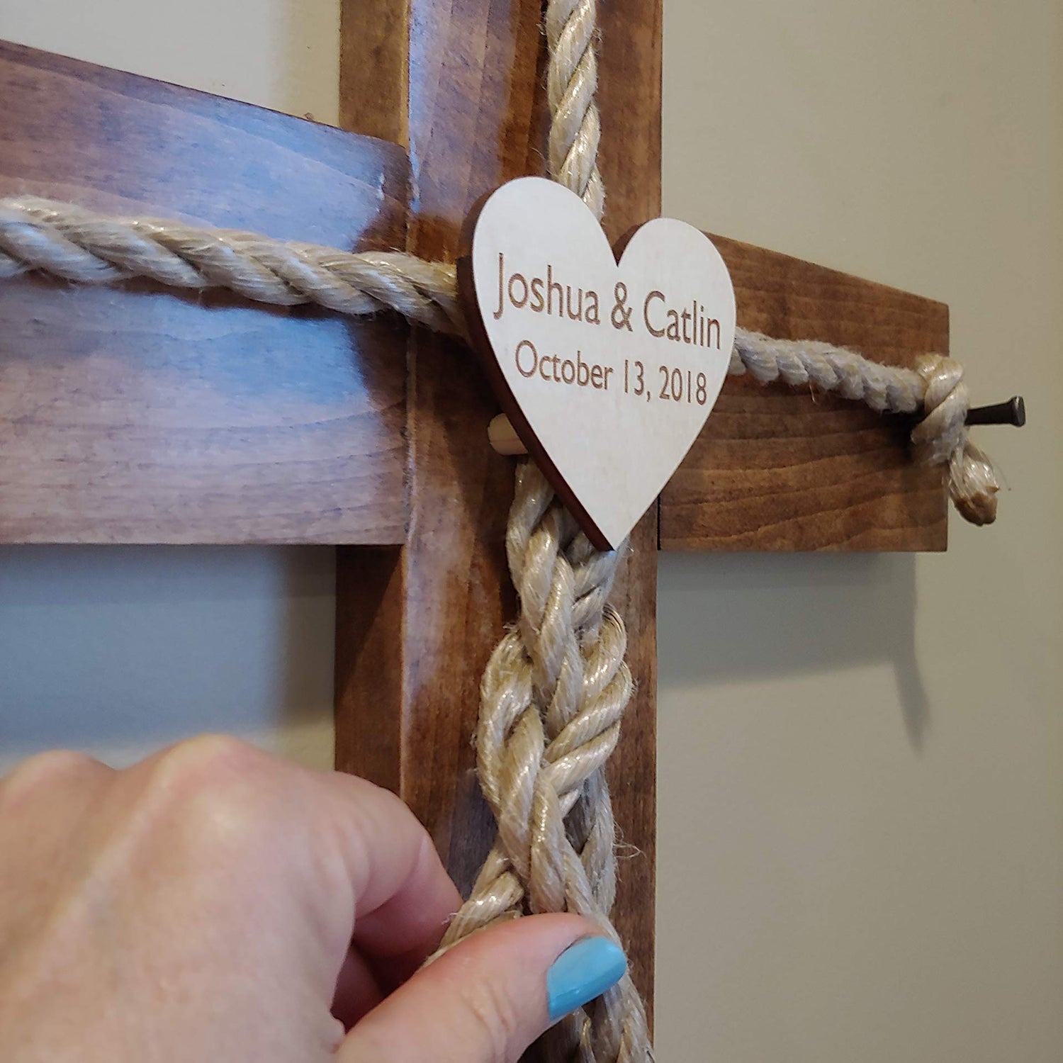 Personalized Laser Engraved Wedding Rope Wood Cross