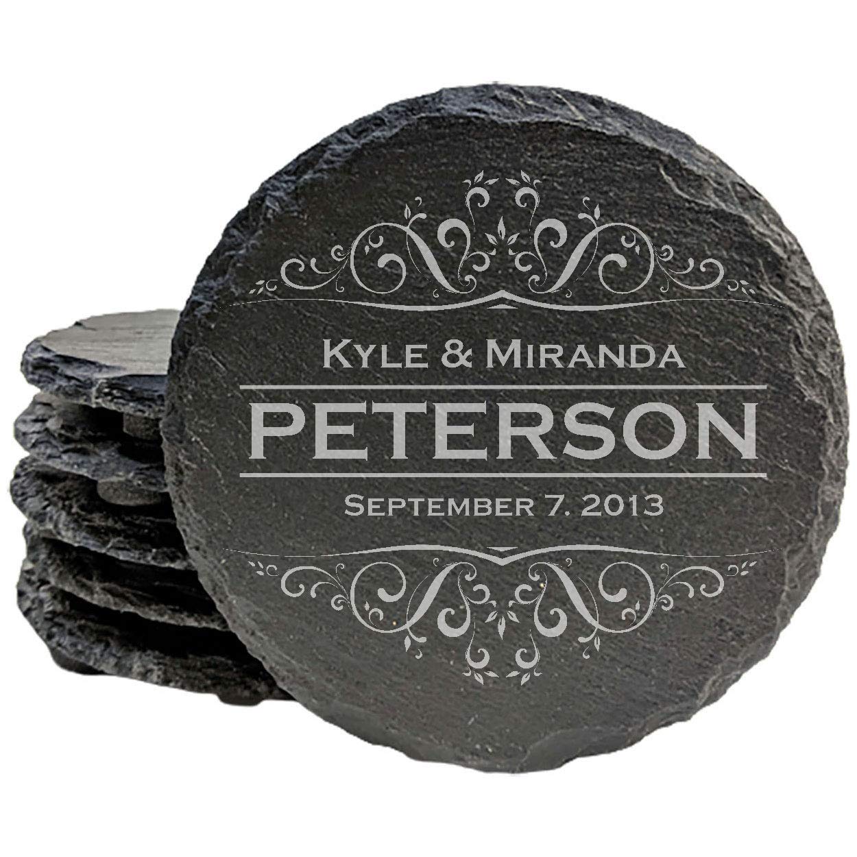 Personalized Monogram Coasters, Natural Slate Stone Coaster Set, Birthday, Wedding Or Anniversary Gift, Customized Rustic Coasters, Drink Coasters - Round Slate - set of 4