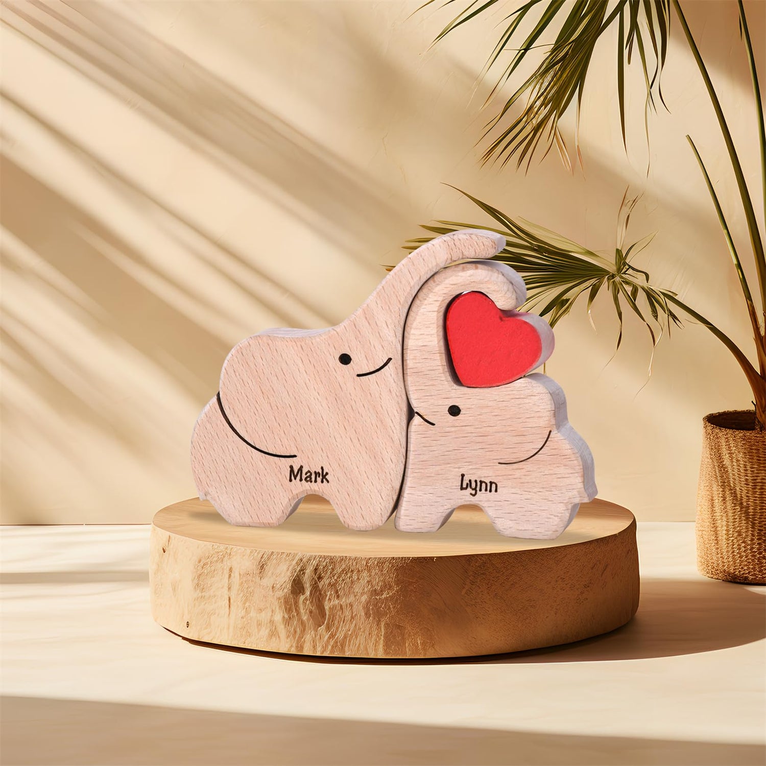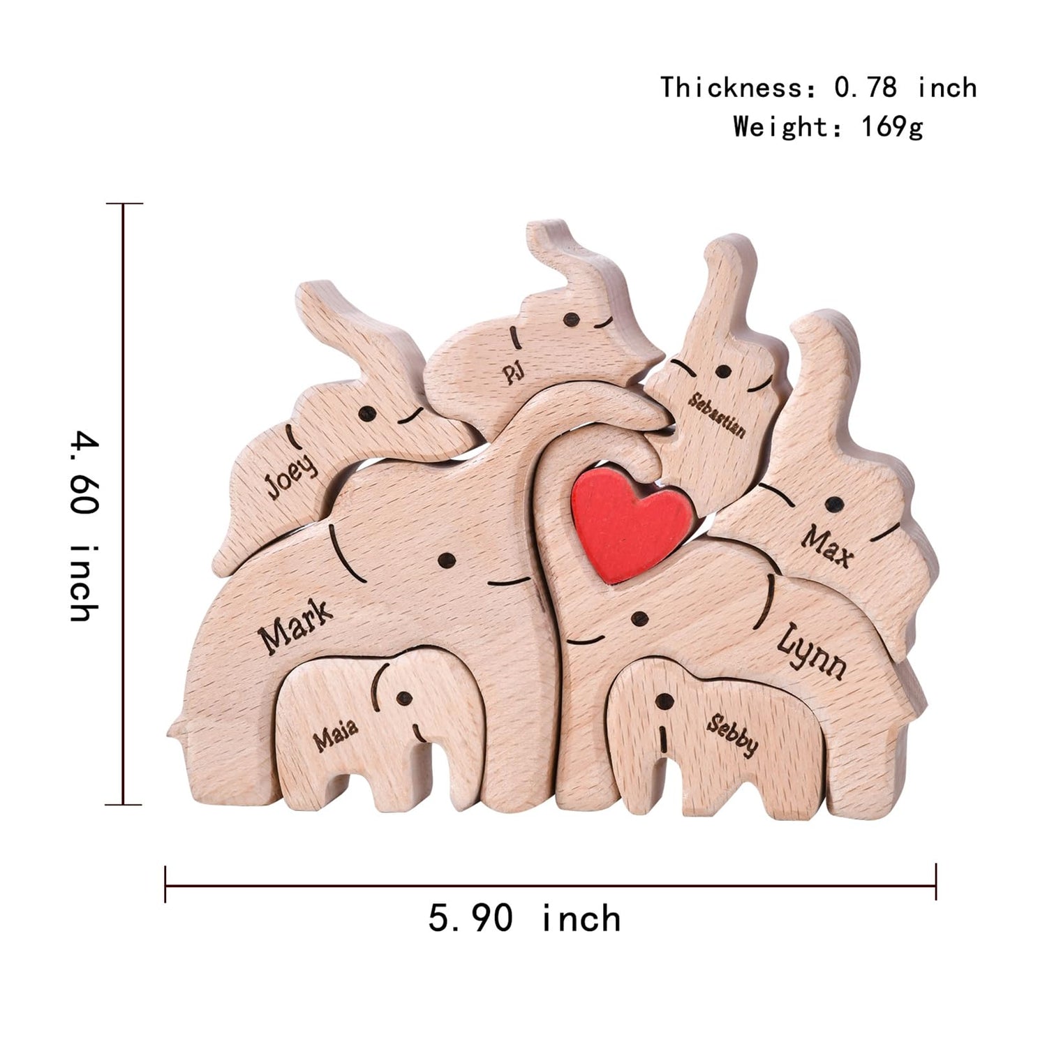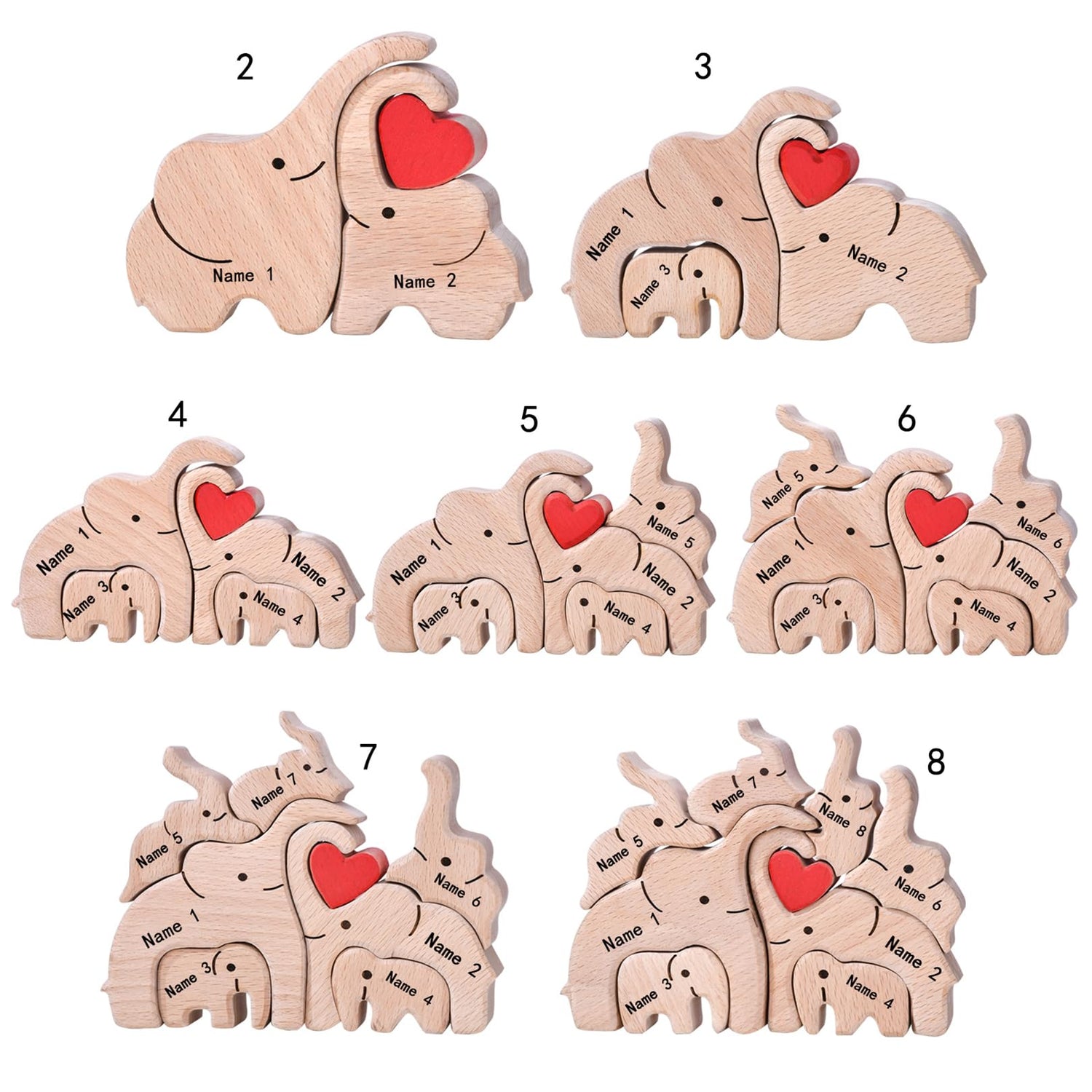 Personalized Wooden Bear Family Puzzles 1-8 Names Customizable Wooden Puzzle Home Table Decor Gift for Dad Mom Couple (Elephants)