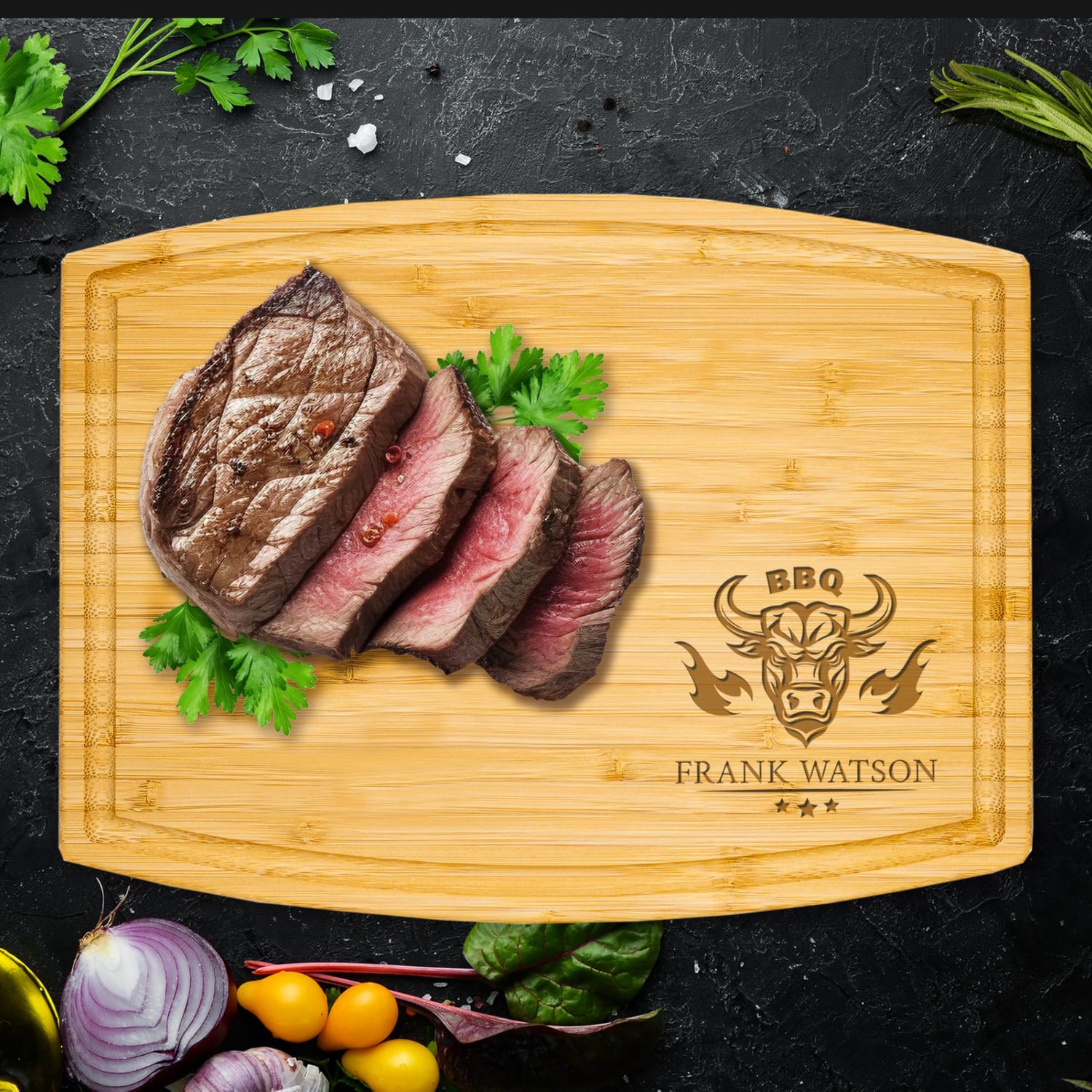 • Quality Assurance: Our top priority. Each personalized cutting board is laser-engraved in-house using state-of-the-art technology, ensuring perfect engraving every time. The natural wood grain makes each board unique, symbolizing every man's individual story. A truly special personalized gift for him.
