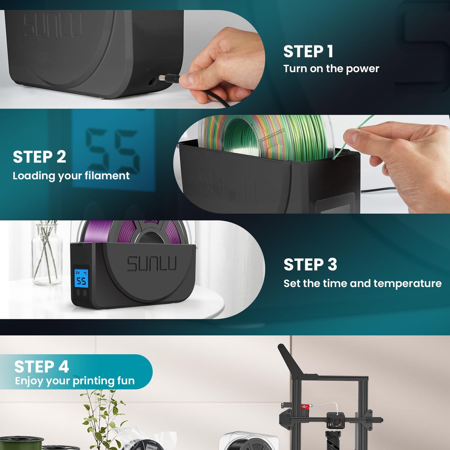 - [CUSTOMER SERVICE] After-Sales Service and Technical Support are provided.If you have any question about SUNLU 3D printer filament dryer S1 Plus, please don't hesitate to contact us.You can add the dryer box to shopping cart first to help quick finding.