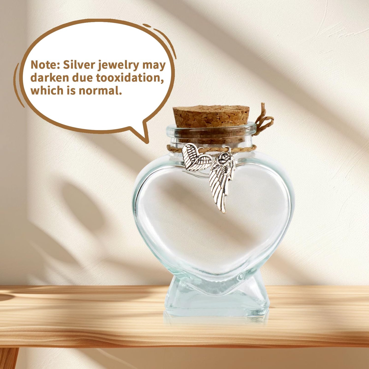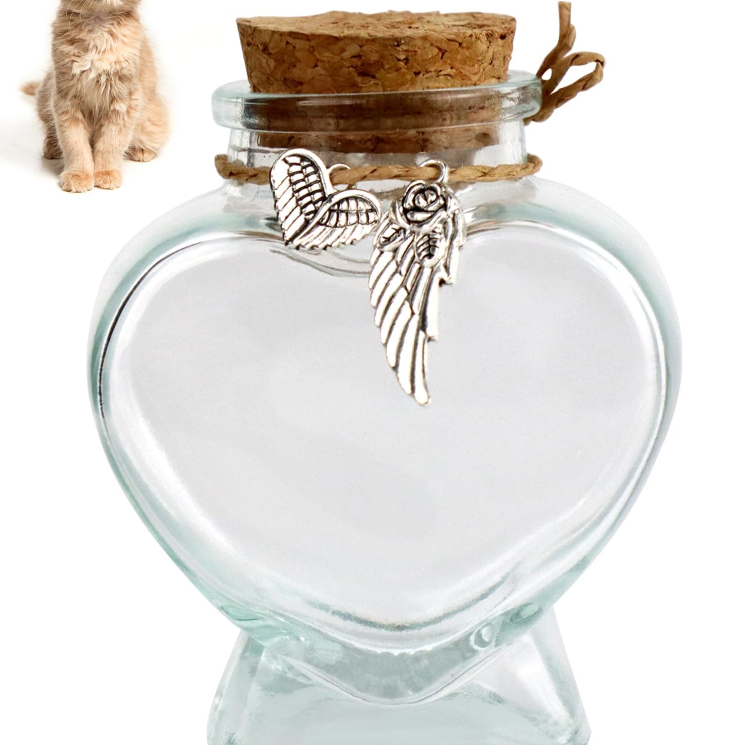 COSOWO Memorial Bottle for Pet Hair, Dogs & Cats Fur Memorial Glass Keepsake with 2 Silver Accessories, Pet Memorial Urn, Heart Shape
