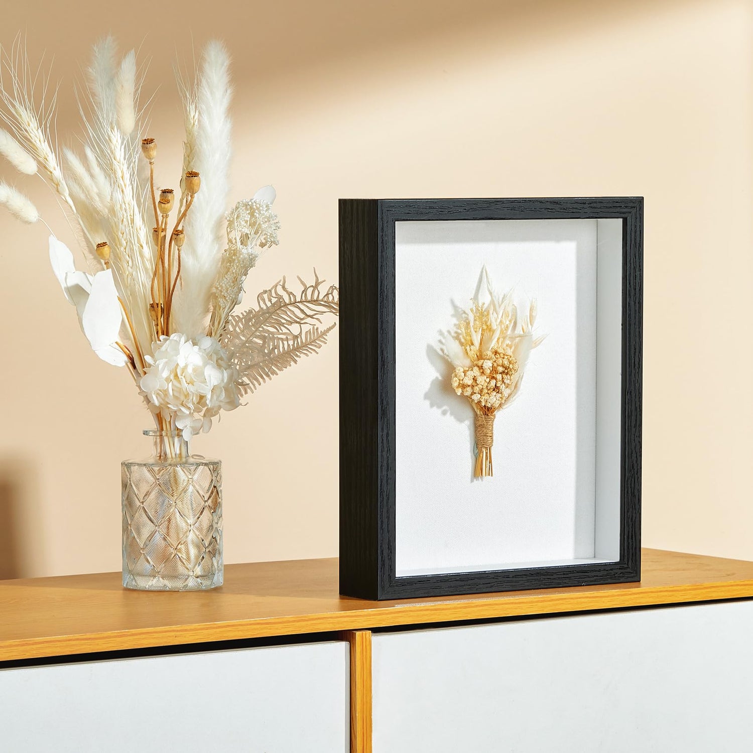 - 【MUXIUNT shadow box】Don't let your beautiful memories sink into the drawer of time, our shadow box frame 8×10 in comes with 0.25 inches white linen textured foam backing, use the included decorative pins to attach souvenir,dried flowers and photo to the display panel - create your own memory museum.