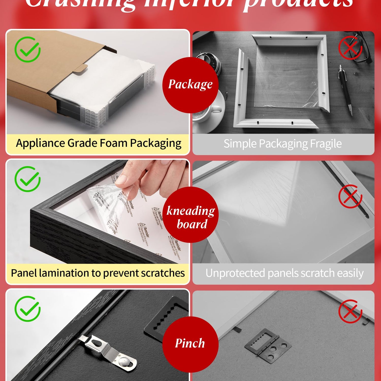 - 【We value your needs】①Omni-directional protection: full foam wrapping + corner protectors + panel protection film + thick cardboard packaging - to ensure that the shadow frame box reaches you intact. ② Thickened acrylic panel: the thickness of the panel is twice that of other shadow box display boxes, don't let cheap panels ruin your wonderful moments.