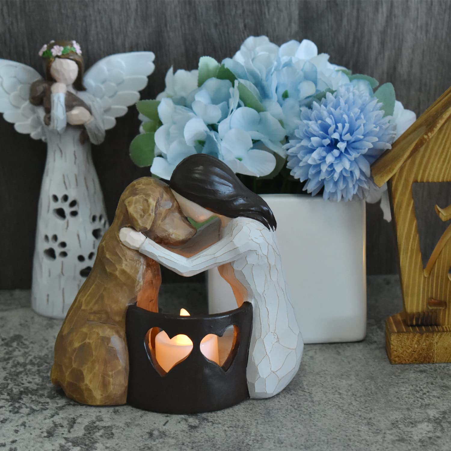 weslinkeji Dog Memorial Gifts,Pet Loss Gifts,Hand-Sculpted Dogs Passing Away Sympathy Gift,Remembrance Gift ,Dog Lovers Candle Holder Statue with LED Candle