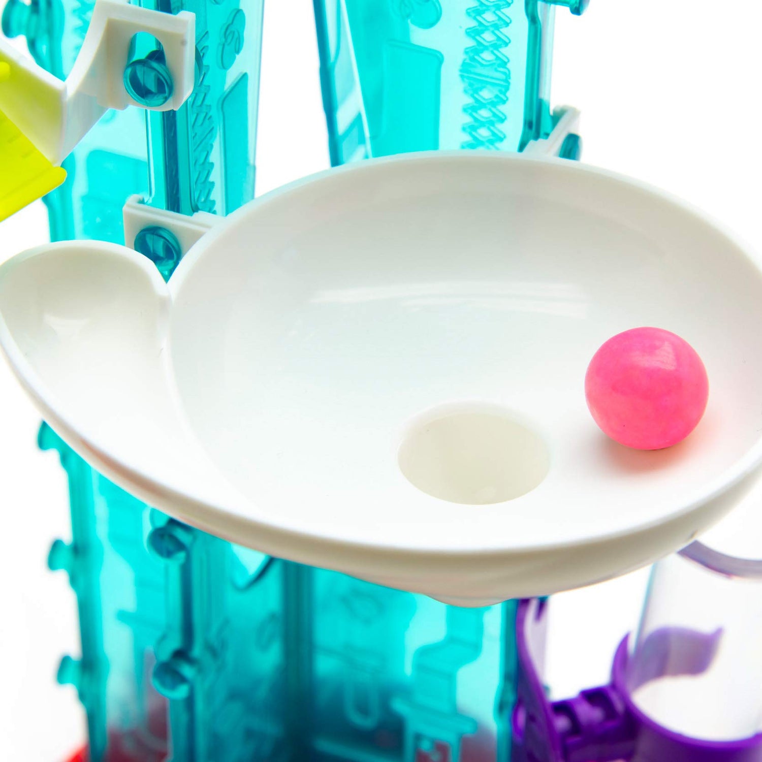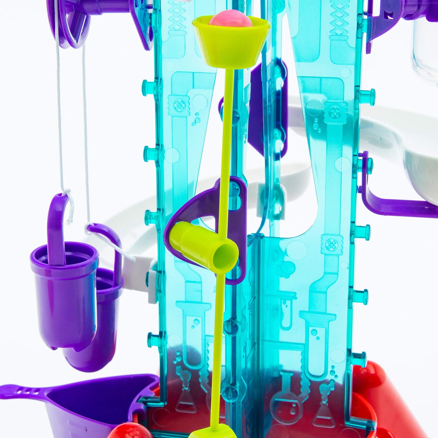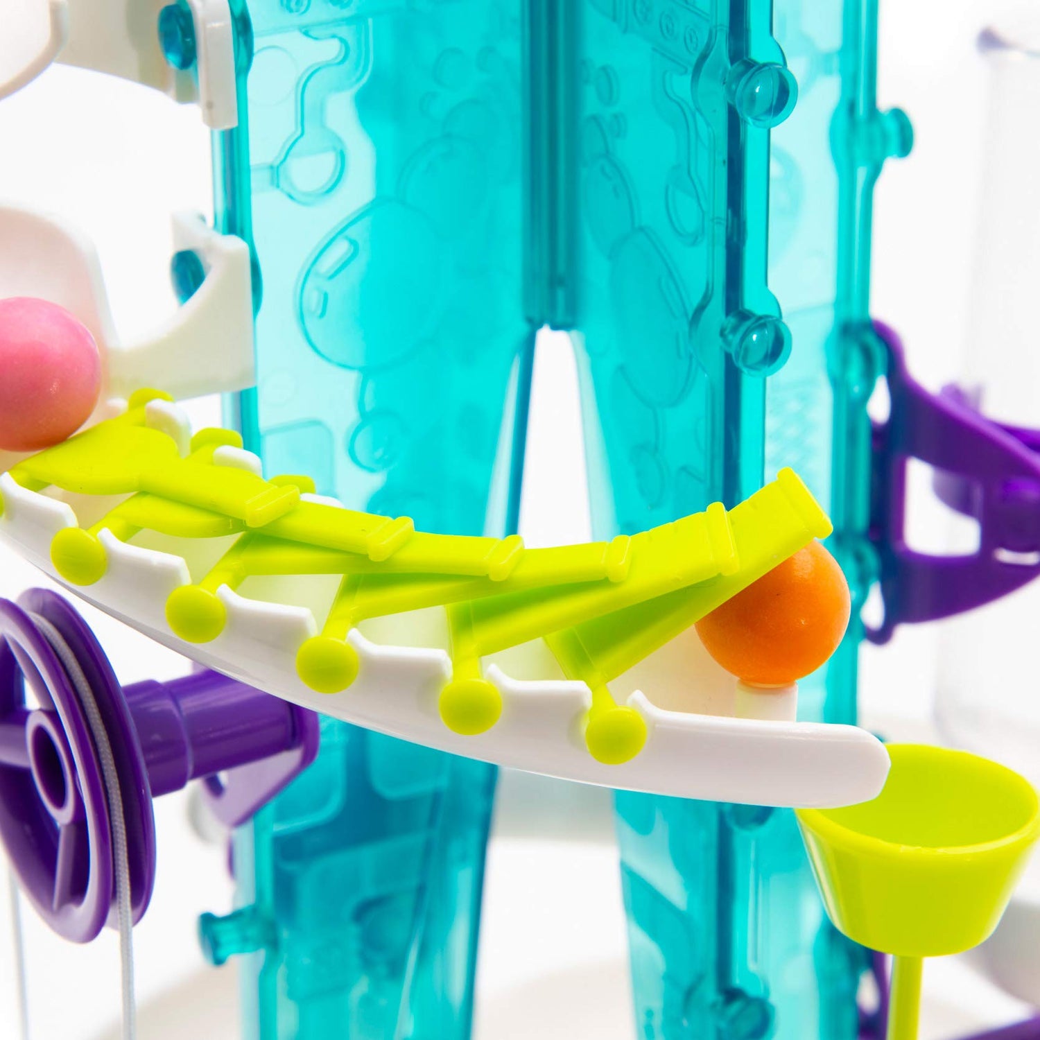 - As they roll down the tracks, the gumballs perform cool stunts via a pulley lift, pendulum, funnel, trampoline, pinball launcher, domino slide, and more!