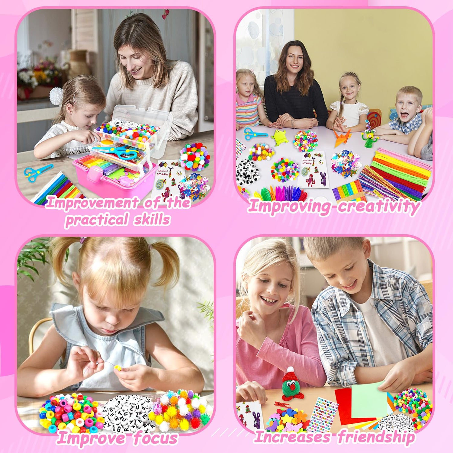 - 【 Home & School Hours of Fun】You and your kids will have hours of fun with DIY crafting supplies, decorating rooms or school projects! Make unique arts and crafts with this craft kit for kids ages 4-8 8-12!