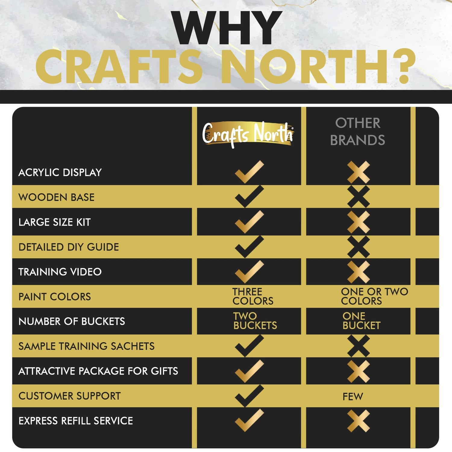 - ✶All-Inclusive Set: The Crafts North kit includes all the tools, supplies, accessories and 6" x 6" x 7" acrylic display with 7" x 7" x 0.5" wooden base, needed to create a stunning statue: sample sachets which allow you to practice before making your official mold, two molding buckets, wooden display base, color paint, brushes, sandpaper, and plastic table cover sheet.