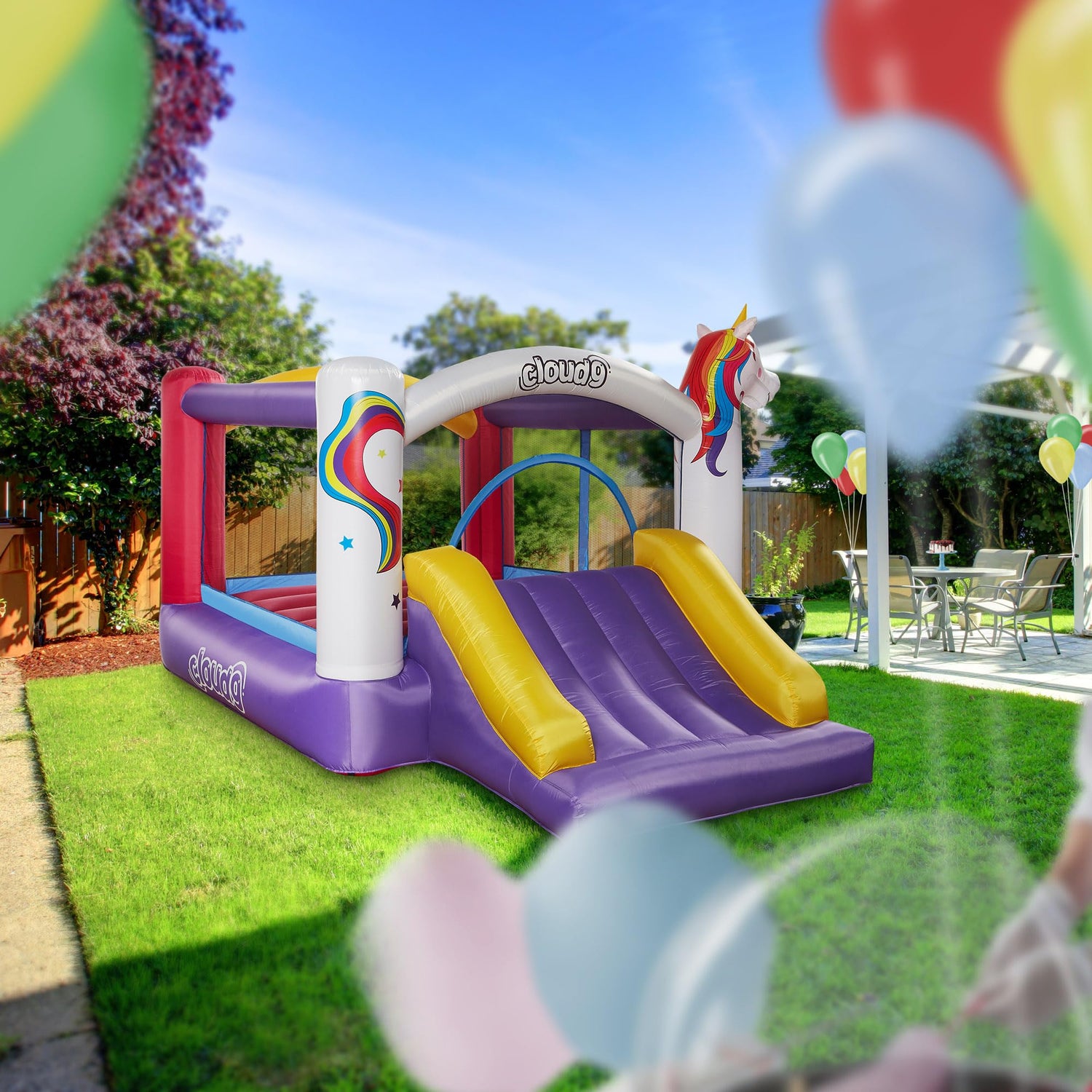 Cloud 9 Inflatable Bounce House and Blower, Unicorn Theme Bouncer for Kids with Slide, Includes Stakes and Repair Patches