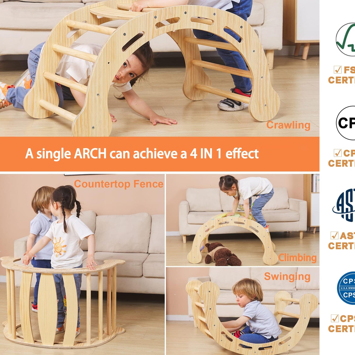 - Upgraded 8-In-1 Playground Climbing Toys: It consists of 3 parts, can be used as a single triangle climber, arch ramp, rock climber, rocking chair and others, so also called 3 In 1,4 In 1 or 5 in 1. FANABAS multifunctional climbing structure integrates exercise and entertainment, with at least 8 multiple combinations of play: Climbing Triangle/Triangle Tent Frame/Arch Climber/Waldorf Rocker/Countertop Fence/Arch Tent Frame/Reversible Rock / Reversible Slide