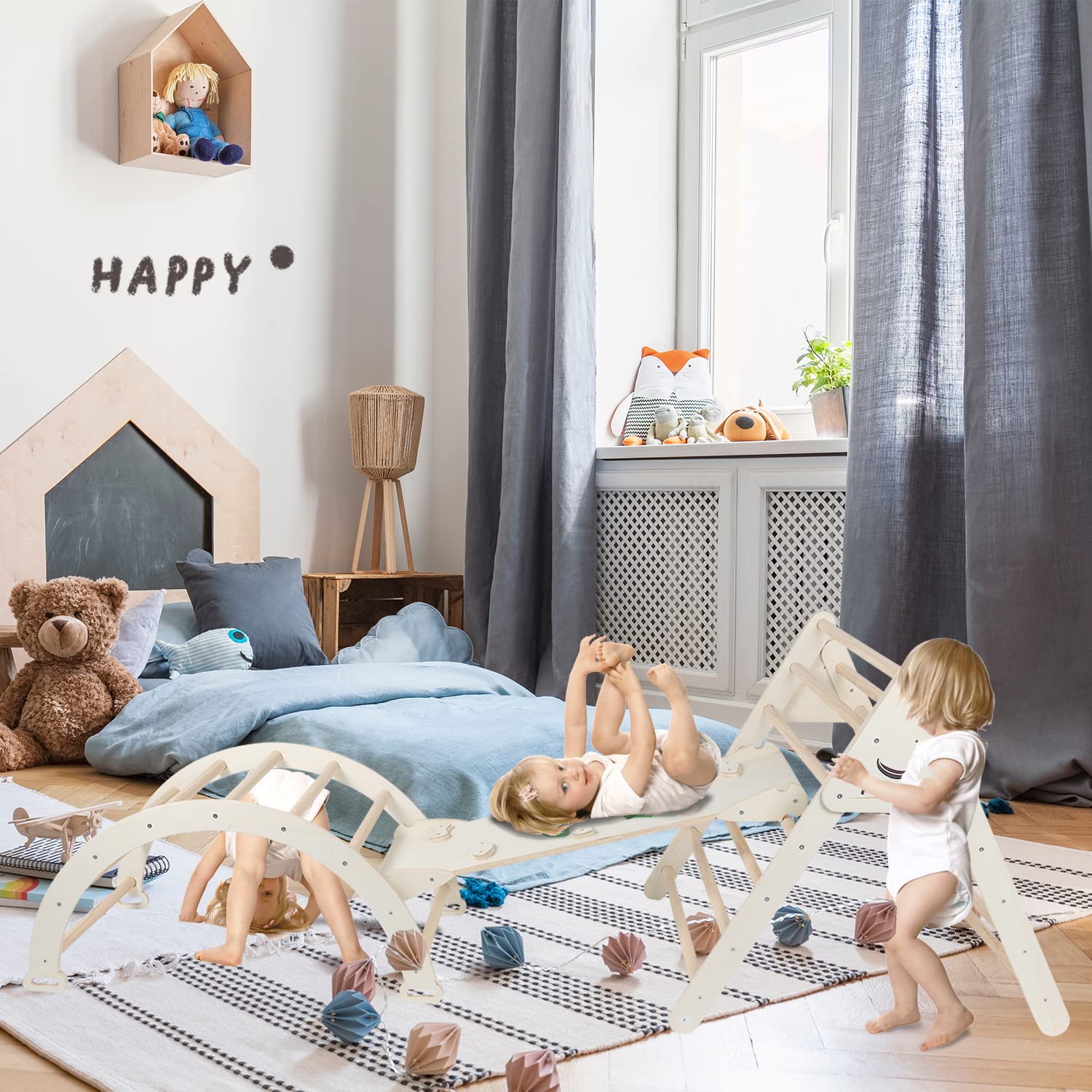 - 【Professional indoor climbing gym】 The FOOWIN Climbing triangle set is based on the Montessori method and Pikler's principle. It can effectively improve a child's motor development, agility, reaction skills, balance control and coordination.One side of the ramp is for sliding, one for climbing.The climbing arch is also a rocking toy when it's put side down According to the character of the child you can matched Climbing triangle set.