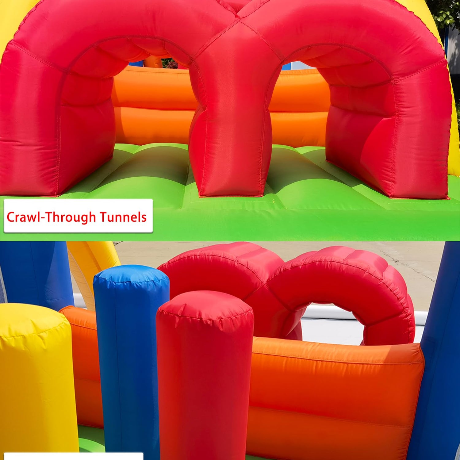 - Endless Fun, Kids Love It! - They can crawl through the tunnel, climb over the wall, jumping on the bouncy house, dodge the obstacle poles, down the slide. Suitable for 4-5 kids play together. It can bear weight of 350 lbs (Suggestion: every kid's weight should be under 100 lbs). It is a perfect place for your kids to burn off all that extra energy.
